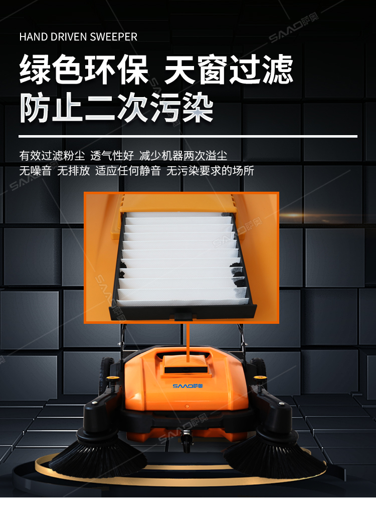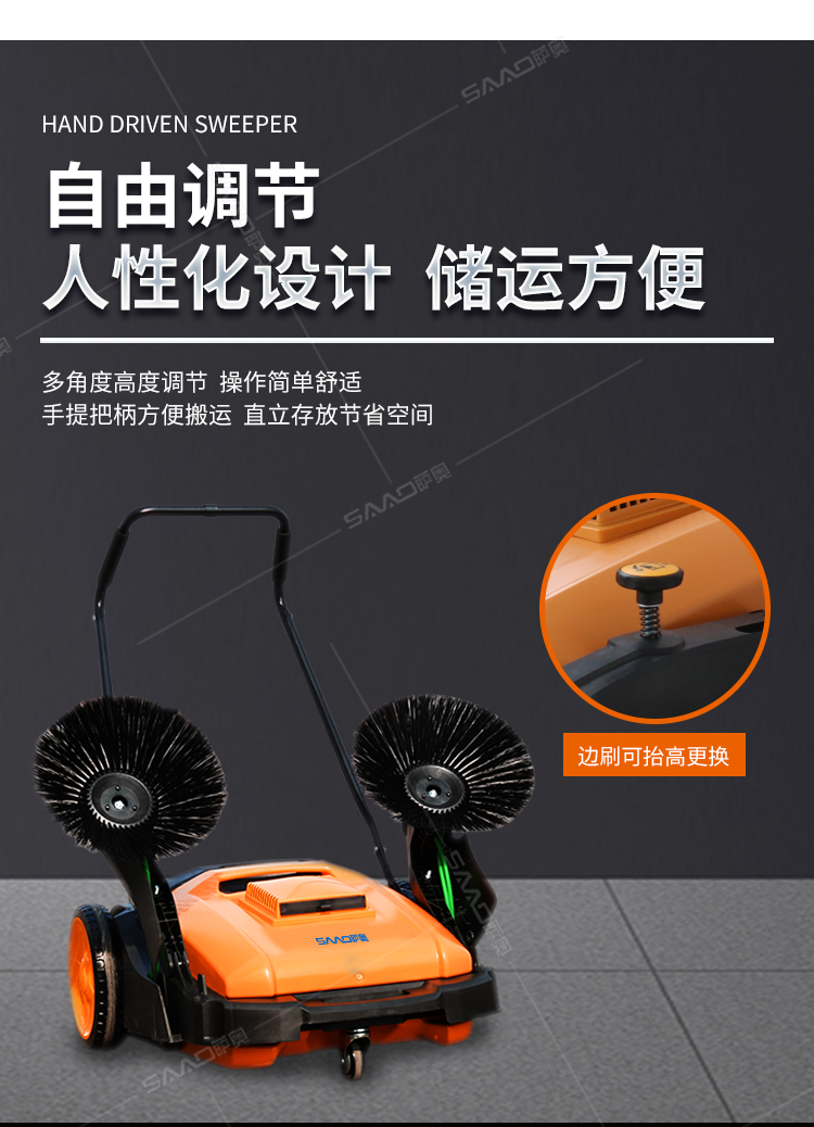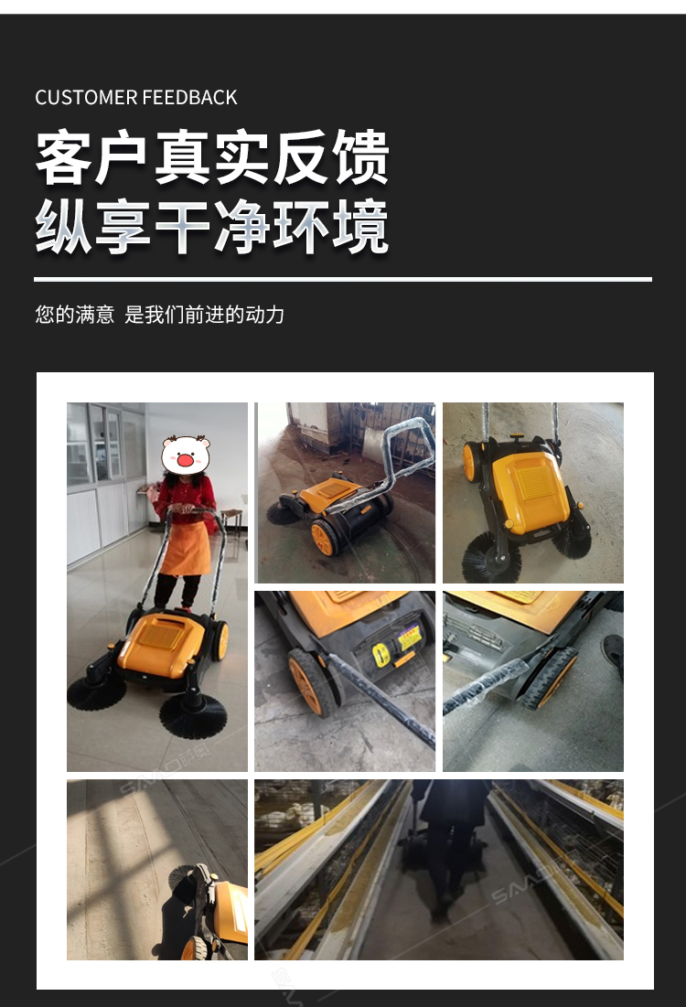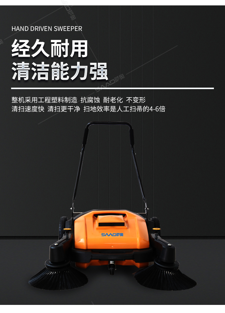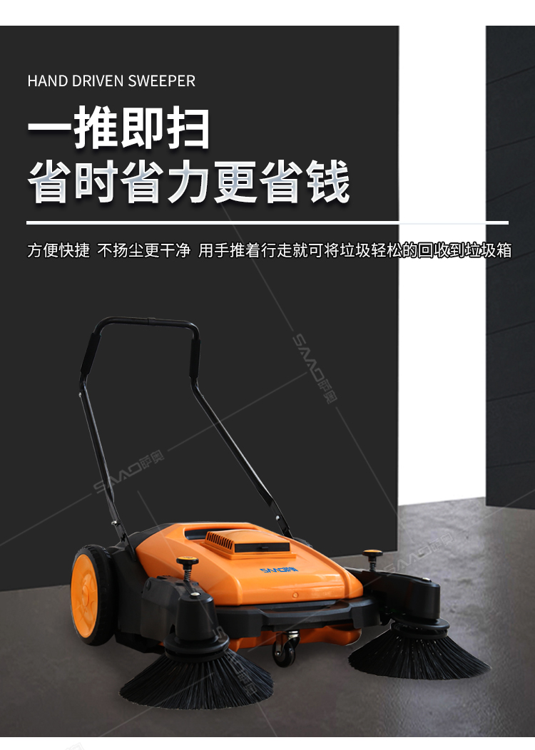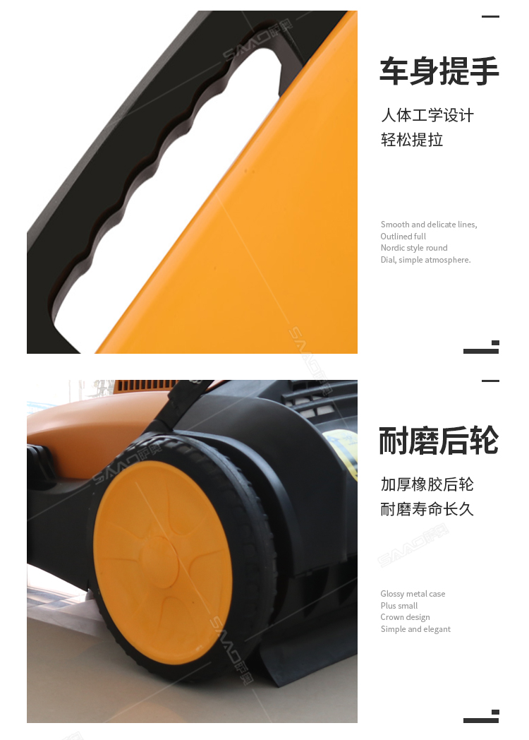 手推式掃地機(jī)能清潔房屋周邊范圍:包括小路,公路,車道和院子,能比用普通的掃把和簸箕節(jié)省5倍的時間,清掃時垃圾被迅速的收集到塵箱,簡單、快速、干凈。