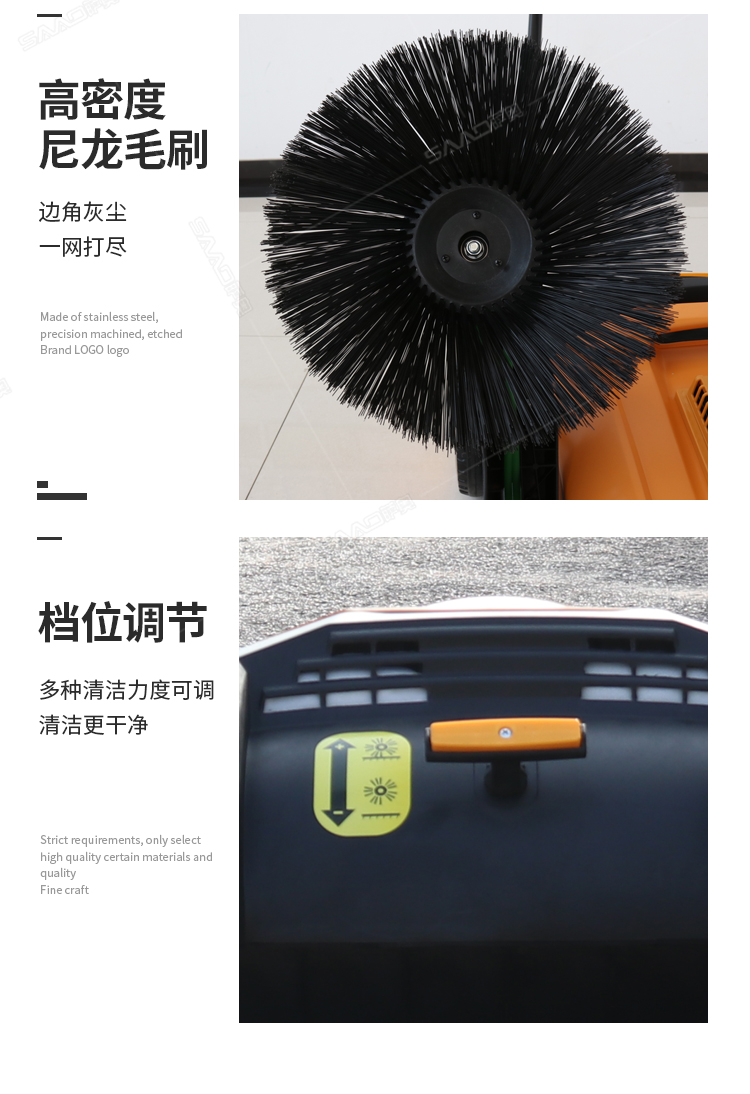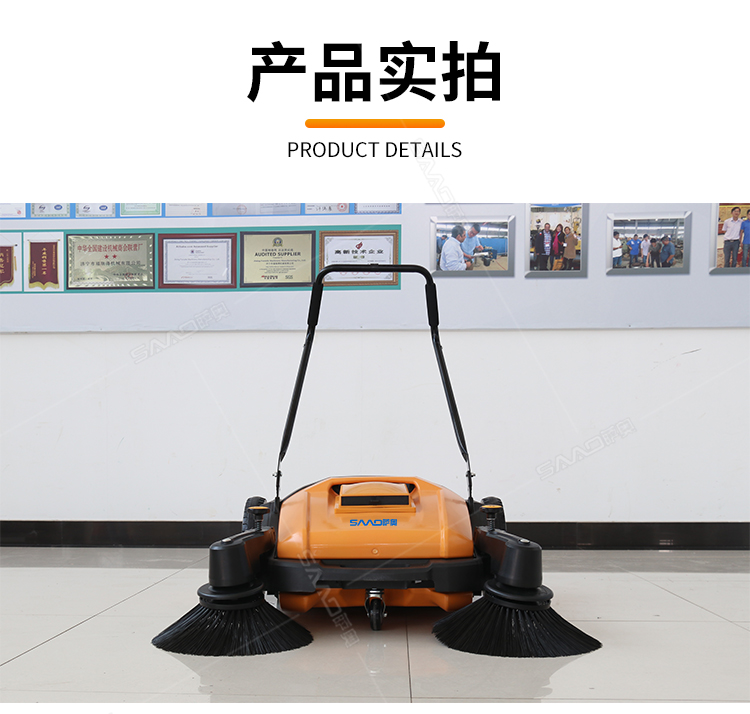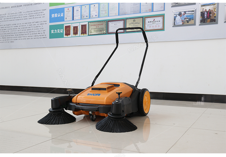 手推式掃地機(jī)設(shè)計精巧、技術(shù)獨特,工作方式采用無動力傳動,依靠機(jī)身雙輪的有效摩擦帶動毛刷運轉(zhuǎn),只需推著步行便可將垃圾輕松回收到垃圾箱毛刷可根據(jù)地面以及垃圾情況,隨時進(jìn)行高度調(diào)節(jié),使之達(dá)到無功損耗和很好的清掃效果。
