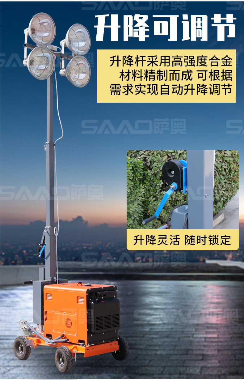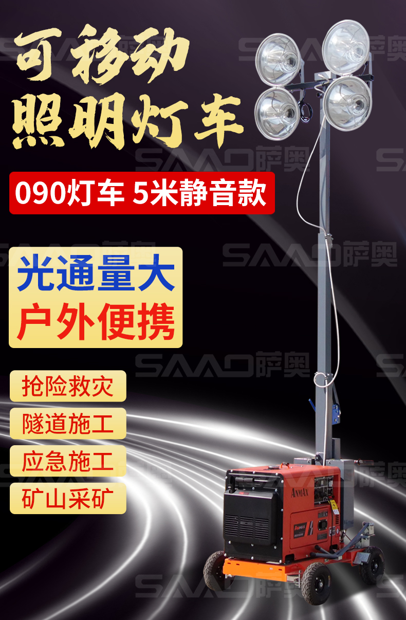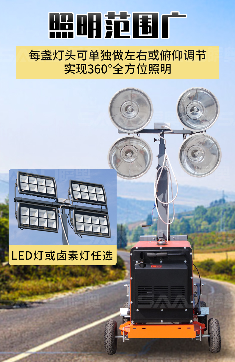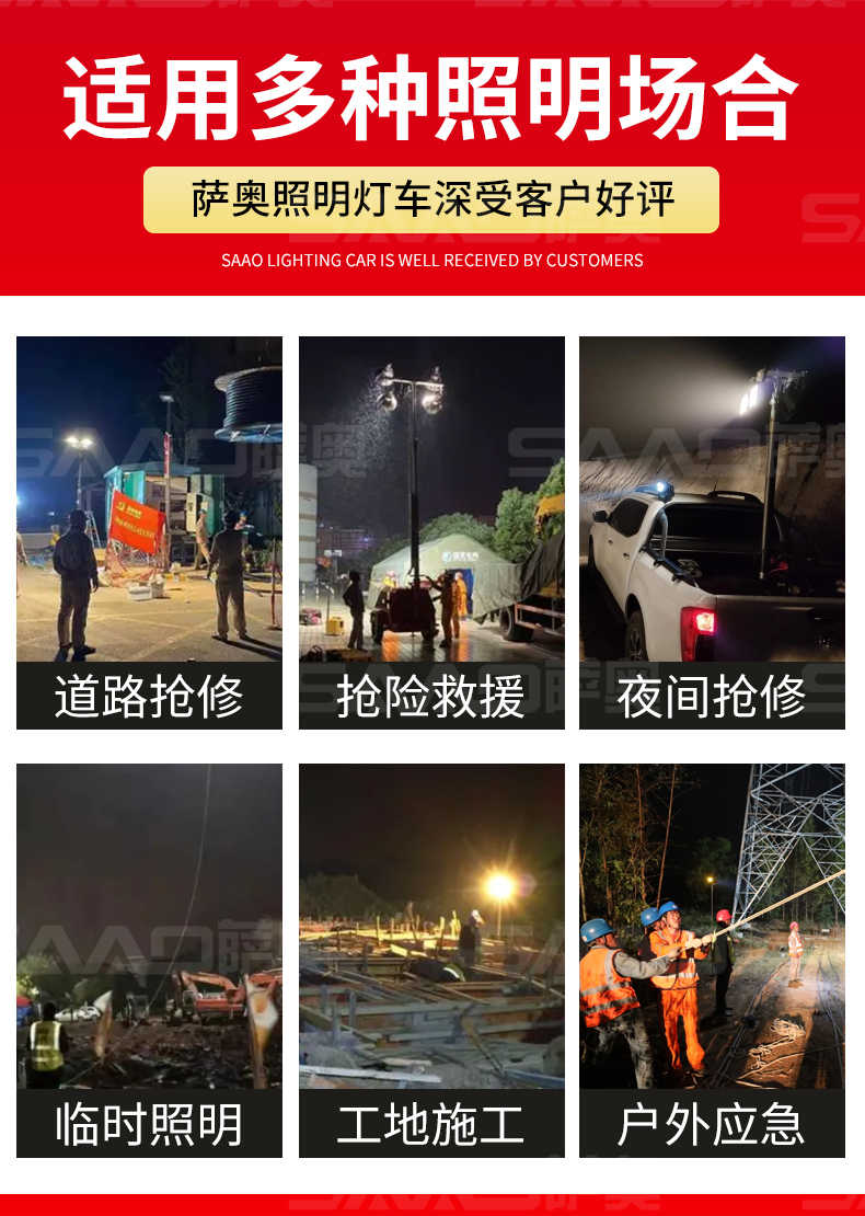 用于體育場(chǎng)館、機(jī)場(chǎng)、碼頭等大型公共場(chǎng)所,公路、鐵路、電力等緊急搶險(xiǎn)現(xiàn)場(chǎng),露天采礦現(xiàn)場(chǎng)等。