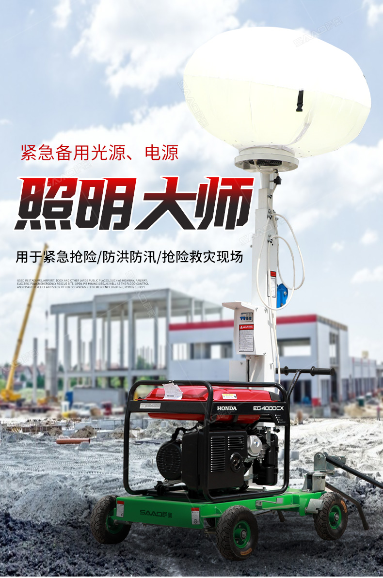 球型工程照明車SZM-Q1000用于體育場館、機場、碼頭等大型公共場所,公路、鐵路、電力等緊急搶險現(xiàn)場,露天采礦現(xiàn)場,以及防洪防汛、搶險救災(zāi)現(xiàn)場等其他需要緊急備用光源