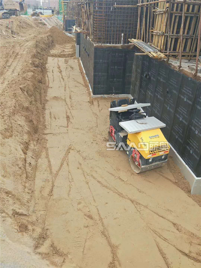 濰坊客戶使用手扶雙輪壓路機施工現(xiàn)場