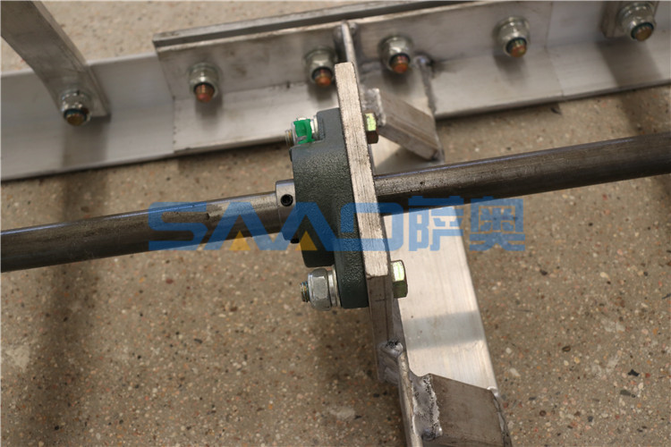 3,振動梁單節(jié)之間采用超強(qiáng)萬向聯(lián)軸器,可調(diào)節(jié)5-10度拱形或者凹型。如欲使厚度很大的混凝土或坍落度很低的混凝土取得完全的振實(shí)度,需使用插入式振搗設(shè)備輔助振實(shí)底層的混凝土。