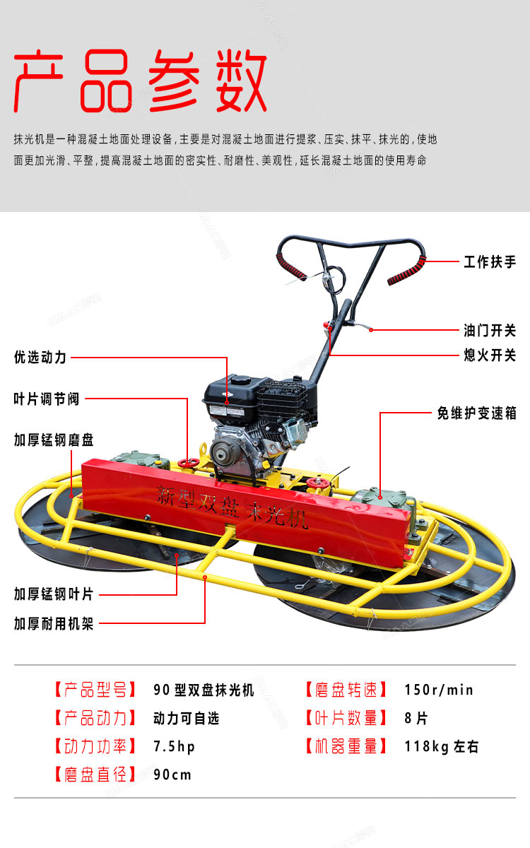 新型雙盤手扶抹光機