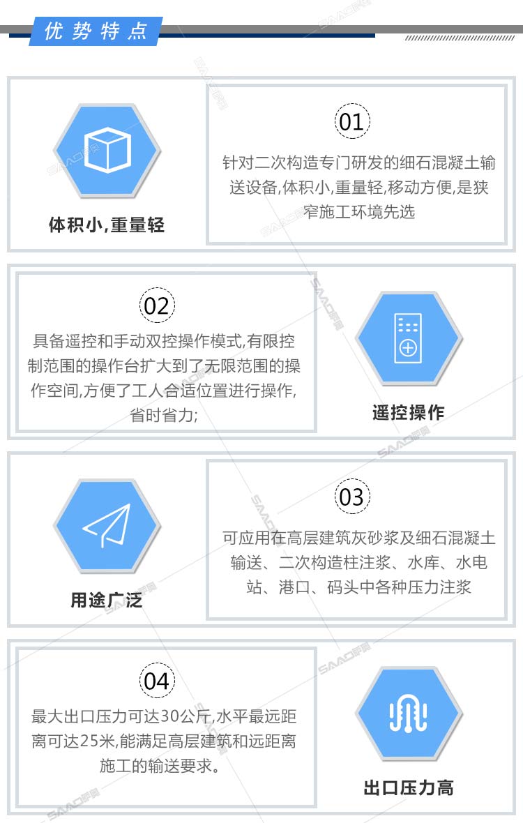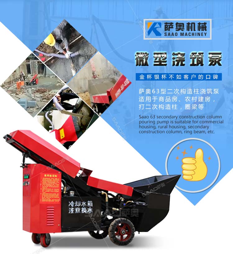 薩奧63型二次構(gòu)造柱澆筑泵適用于商品房、農(nóng)村建房、打二次構(gòu)造柱,圈梁等。