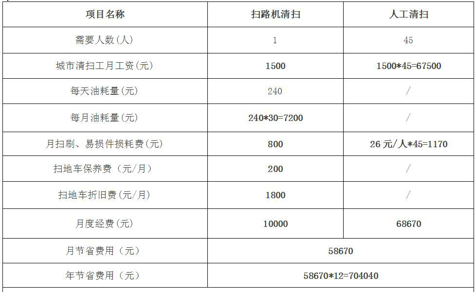 結(jié)論:薩奧路面保潔養(yǎng)護清掃機每年可至少節(jié)省費用將近70萬元。