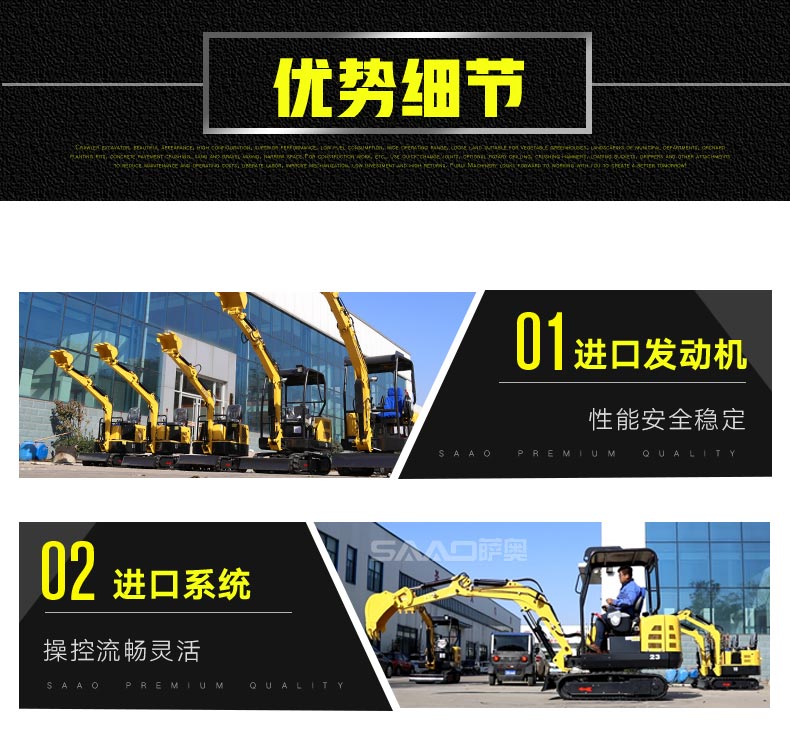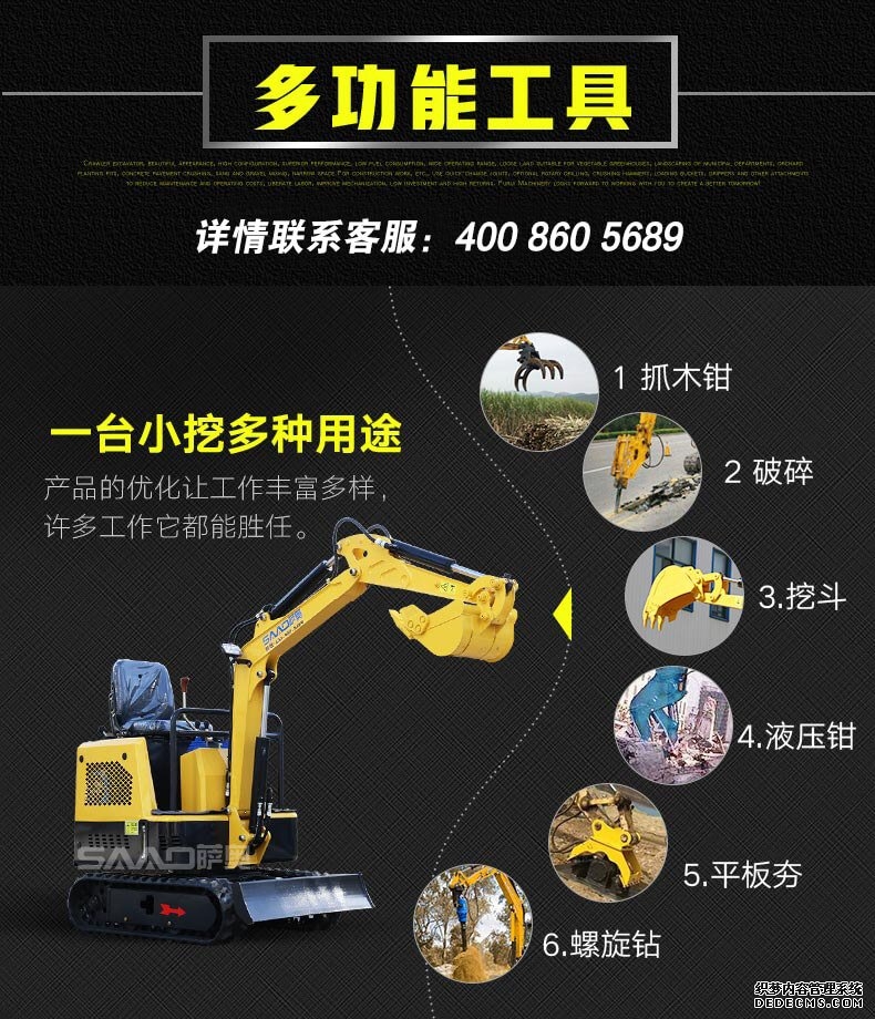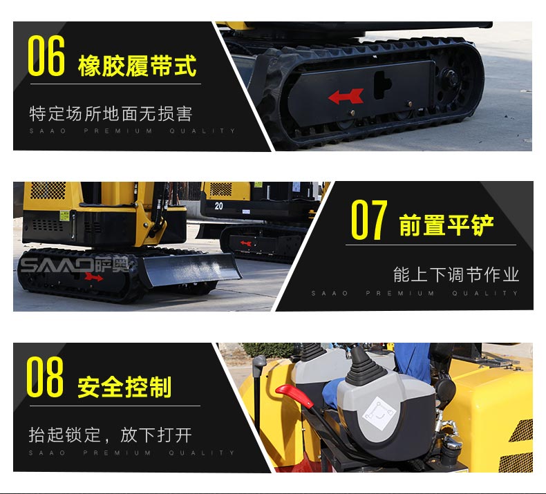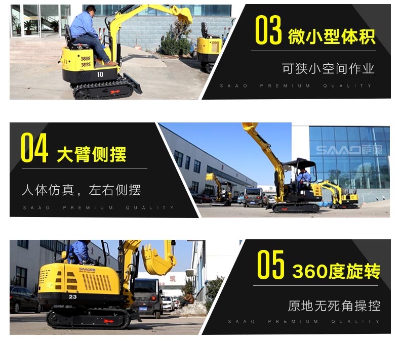 該產(chǎn)品外觀漂亮、配置高、性能優(yōu)越、油耗低、作業(yè)范圍廣.適合蔬菜大棚的土地疏松,市政部門的園林綠化、果園苗圃栽挖坑,混凝土路面破碎,砂石料攪拌,空間狹小的施工作業(yè)等,使用快換接頭,可選配旋挖鉆,破碎錘、裝載斗、抓具等各種屬具,降低維護(hù)及作業(yè)成本,解放勞動力,提高機(jī)械化程度,低投資、高回報。薩奧機(jī)械期待與您共創(chuàng)美好明天!