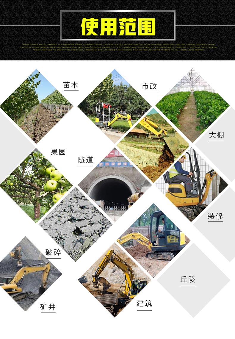 該產(chǎn)品外觀漂亮、配置高、性能優(yōu)越、油耗低、作業(yè)范圍廣.適合蔬菜大棚的土地疏松,市政部門的園林綠化、果園苗圃栽挖坑,混凝土路面破碎等。