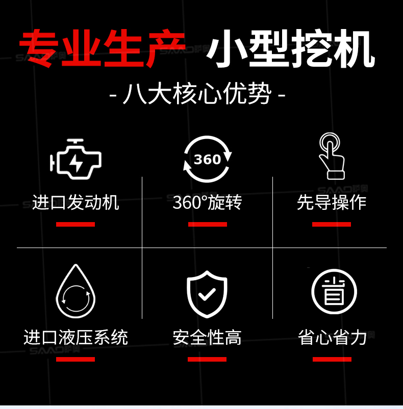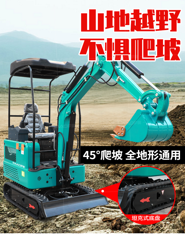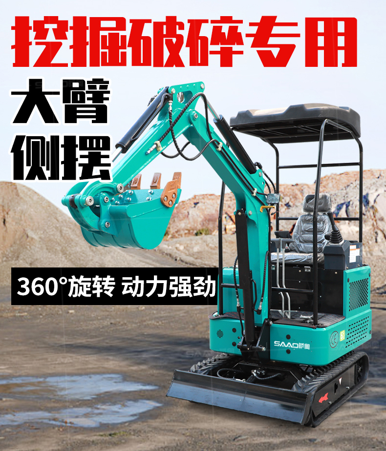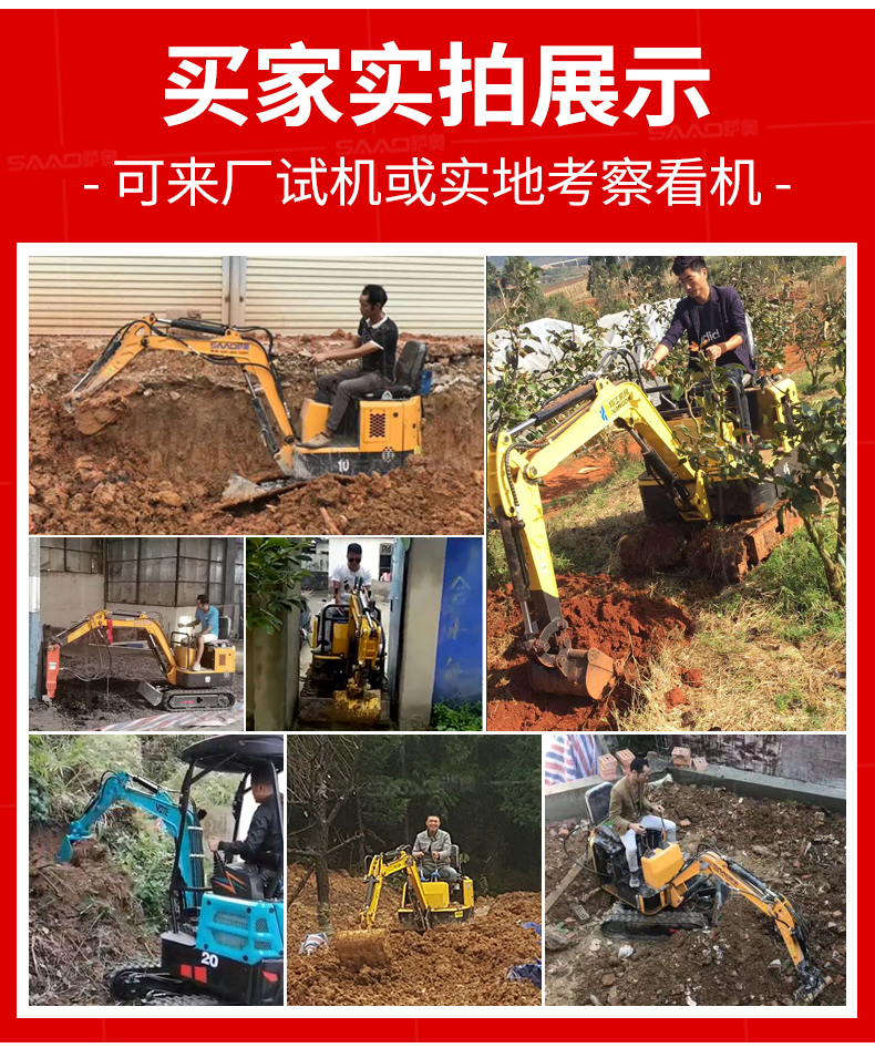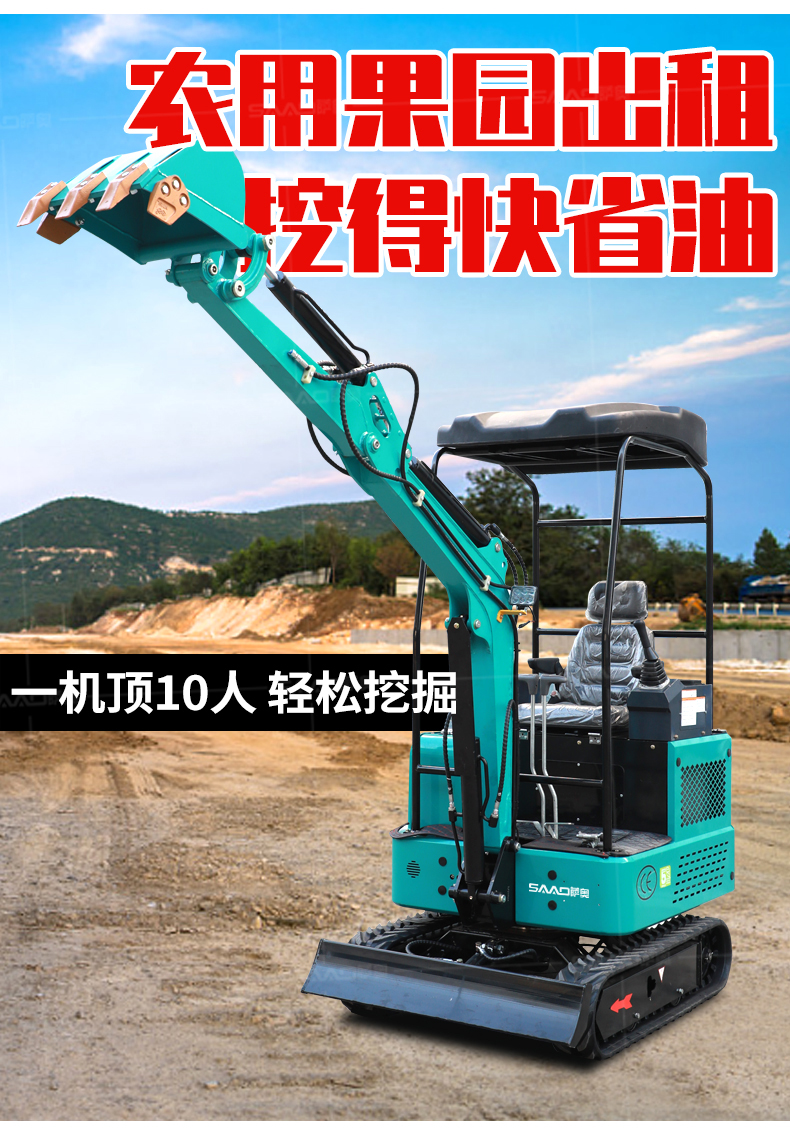 小型挖掘機(jī)可選配多種配件-多種輔具自由切換。