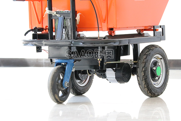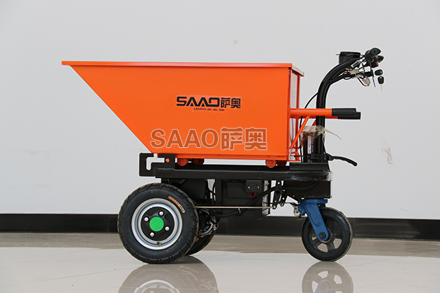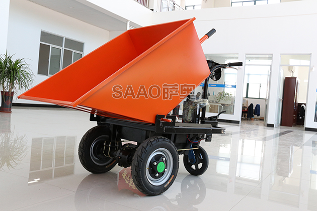 新型電動(dòng)斗車(chē)相比于傳統(tǒng)的翻斗車(chē)改用了電力推動(dòng),前進(jìn)、后退兩檔操作,告別了過(guò)去用人力推車(chē),比較費(fèi)力,人員勞動(dòng)強(qiáng)度大等弊病。新型電動(dòng)斗車(chē)由人員控制方向,手柄控制速度自動(dòng)形式,爬坡能力強(qiáng),路面不平的地方也可以行駛。