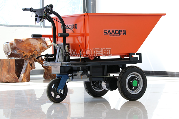 新型電動(dòng)斗車(chē)相比于傳統(tǒng)的翻斗車(chē)改用了電力推動(dòng),前進(jìn)、后退兩檔操作,告別了過(guò)去用人力推車(chē),比較費(fèi)力,人員勞動(dòng)強(qiáng)度大等弊病。新型電動(dòng)斗車(chē)由人員控制方向,手柄控制速度自