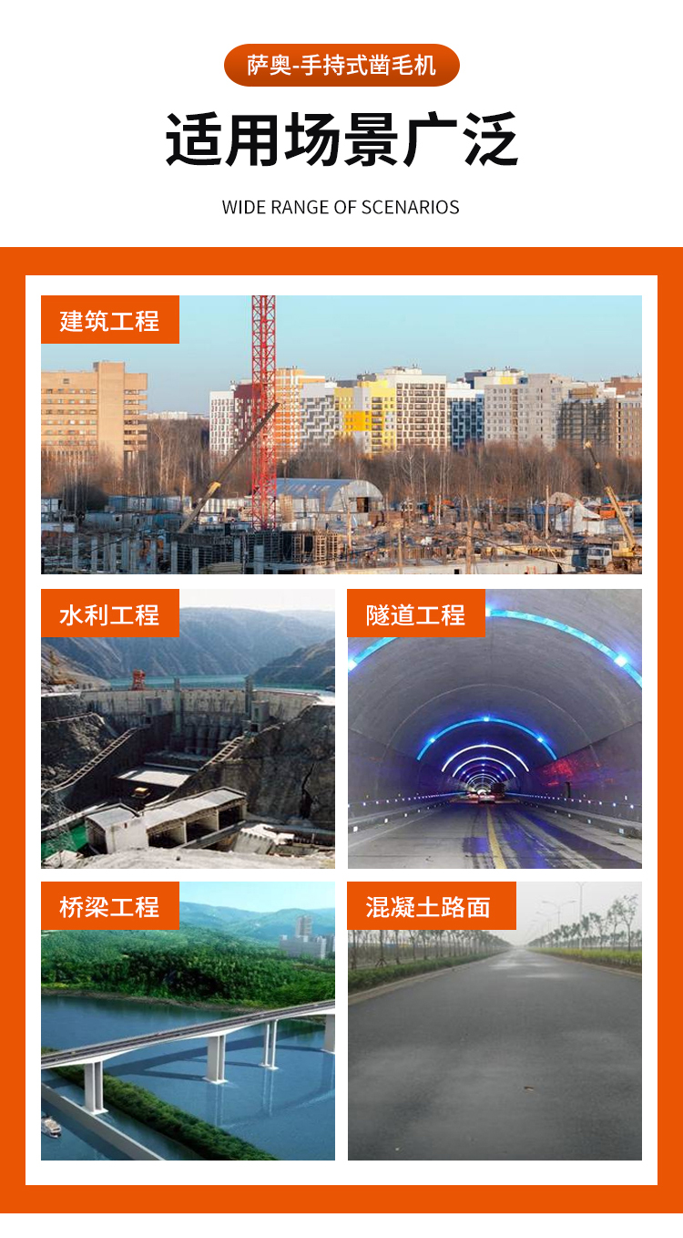 主要適用于水庫、大壩滲漏,險橋危橋、電廠、隧洞、高速公路、鐵路橋面以及箱梁混凝土等眾多領(lǐng)域 。主要是對混凝土表面進(jìn)行剔鑿,建筑物墻體、地面以及市政工程混凝土面層剔除、修補(bǔ)、翻新、加固等。