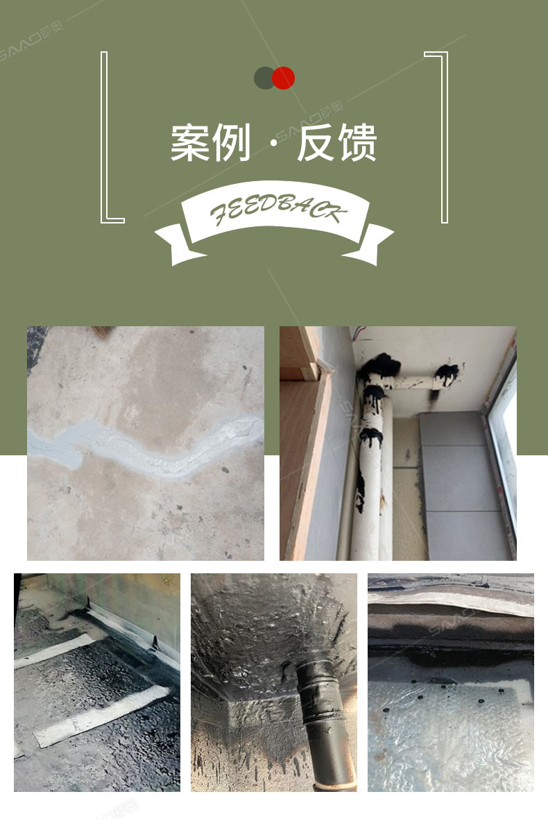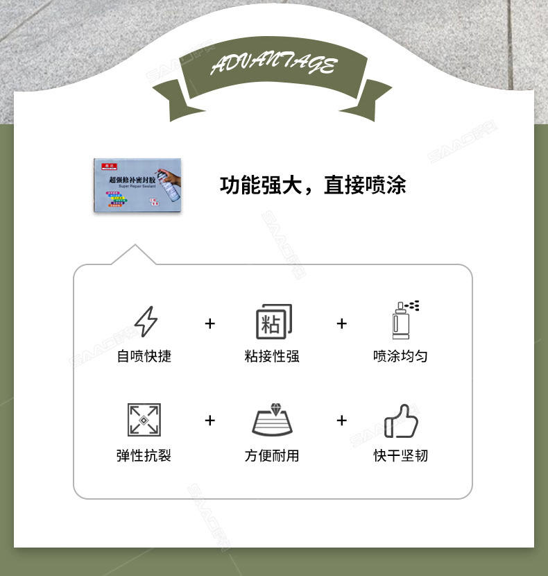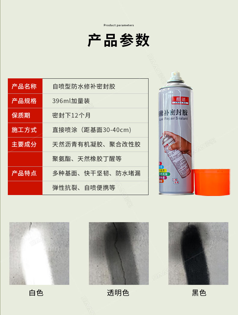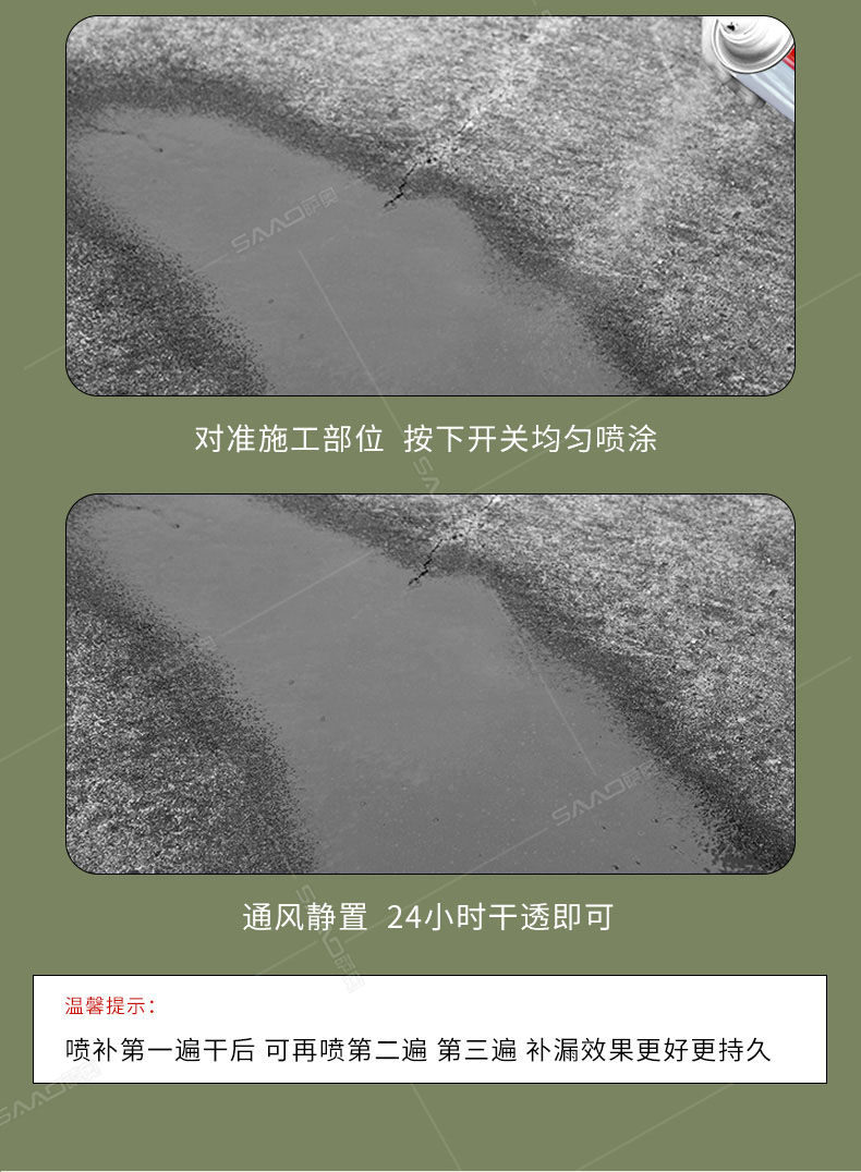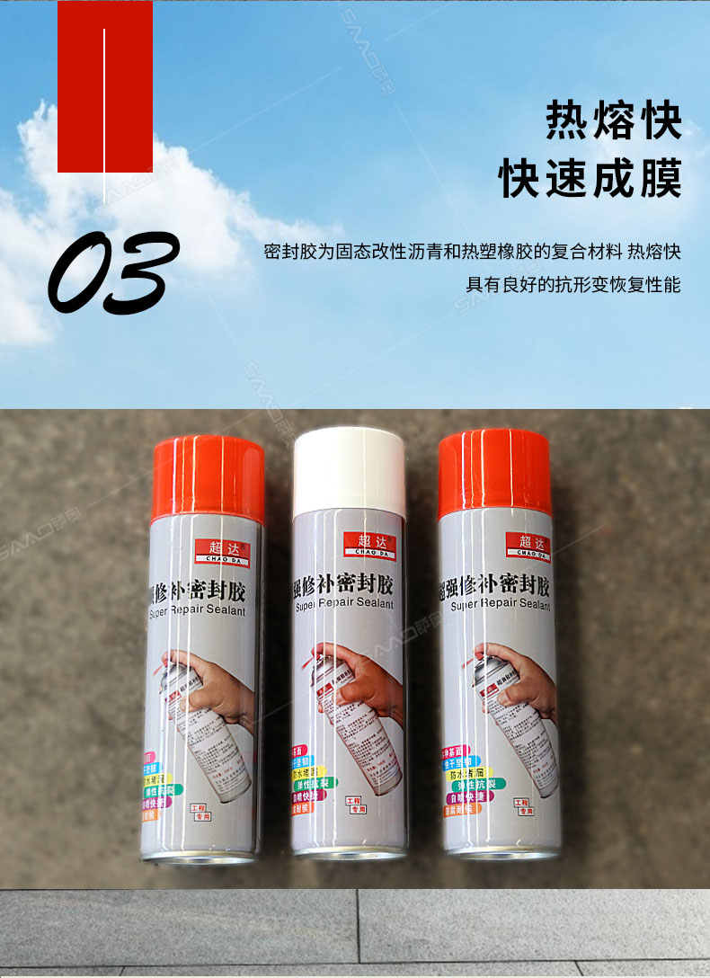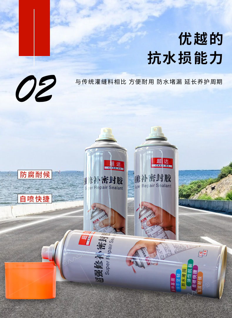 產(chǎn)品特性: 超強(qiáng)修補(bǔ)密封膠是專(zhuān)為防水施工中管根、管口、拐角和裂縫等處防水修復(fù)、薄弱易漏點(diǎn)而開(kāi)發(fā)。直接噴涂、噴涂后形成強(qiáng)效橡膠密封保護(hù)膜,有效附著于各類(lèi)表面與材質(zhì),直
