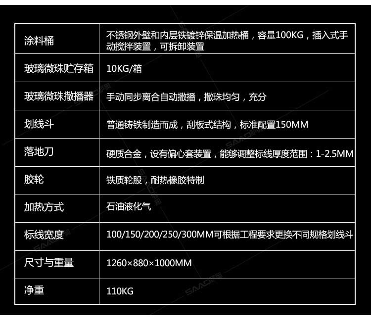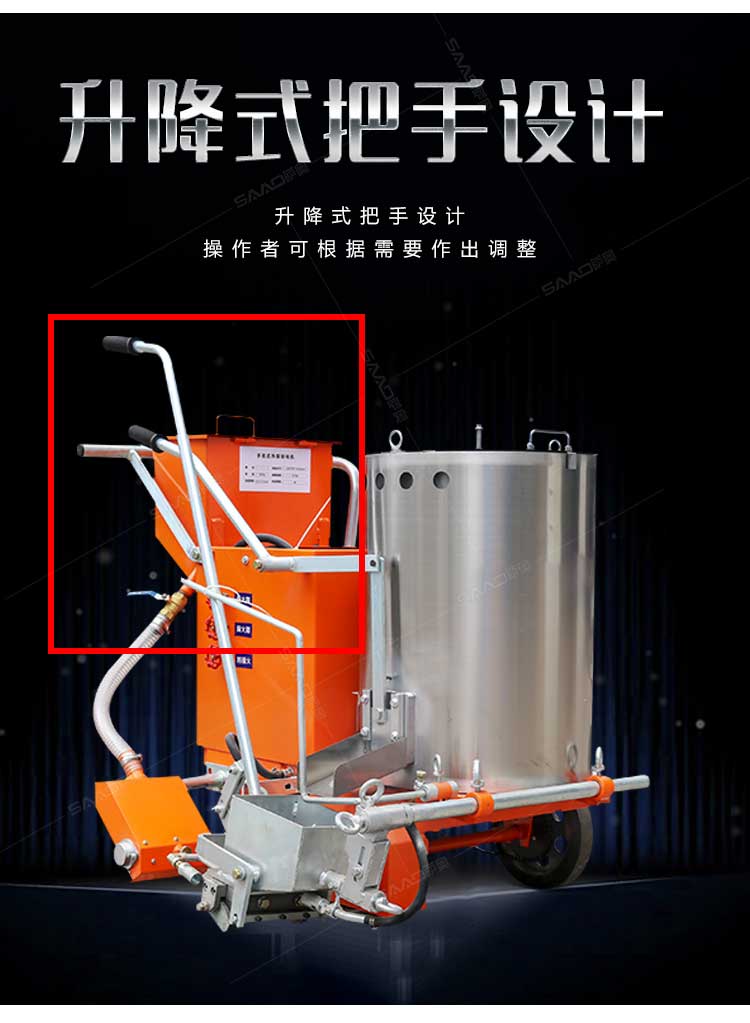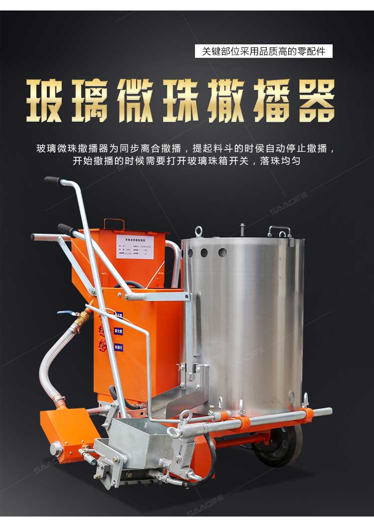 SAAO-160手推熱熔劃線機(jī)采用普通鑄鐵劃線斗,同步離合玻璃微珠自動(dòng)撒播器,具有結(jié)構(gòu)簡(jiǎn)單、輕便、價(jià)優(yōu)、性能優(yōu)良等特點(diǎn)。