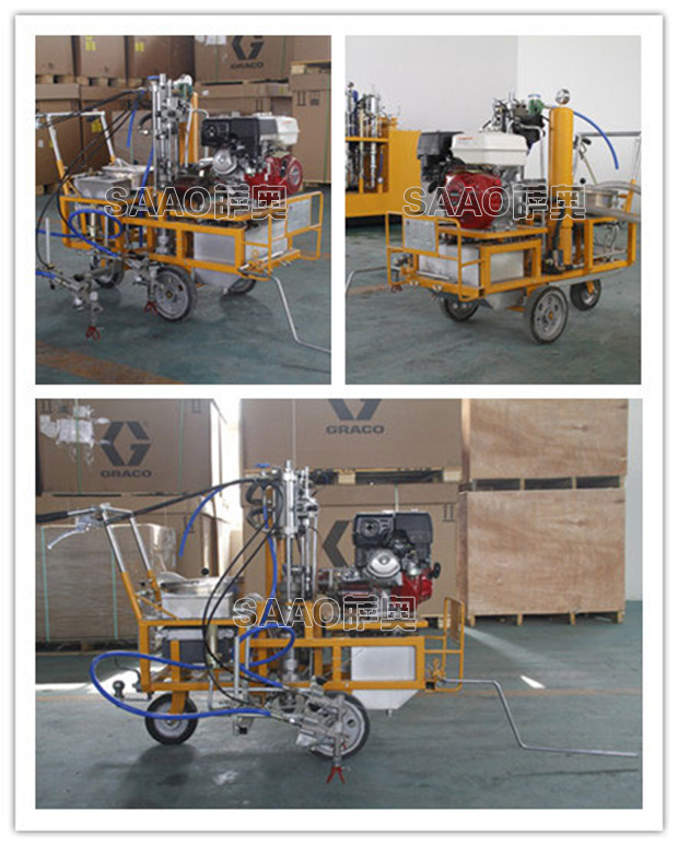 手推車(chē)載兩用冷噴劃線機(jī)為高雅力等流量型無(wú)氣噴涂機(jī),該機(jī)利用汽油機(jī)驅(qū)動(dòng)單柱塞泵,是涂料在機(jī)內(nèi)形成高壓進(jìn)行噴涂,所以劃線厚薄均勻角齊,噴槍架導(dǎo)向桿升降設(shè)計(jì)