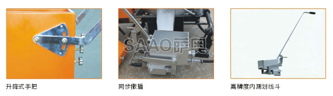 SAAO-320自走式熱熔劃線機采用德國最新的智能程序控制器和人性化控制面板,并配加進退自如的無級變速行走系統(tǒng),大大提高了施工效率,是熱熔標線施工的關(guān)鍵設(shè)備,同熱熔釜配合使用,完成標線施工,該機采用特殊制造的高精密度鑄鐵劃線斗,確保所劃標線邊齊,頭齊,厚薄均勻,線型美觀,落地刀能夠適應(yīng)不同情況的路面.