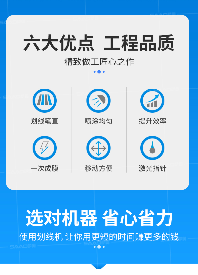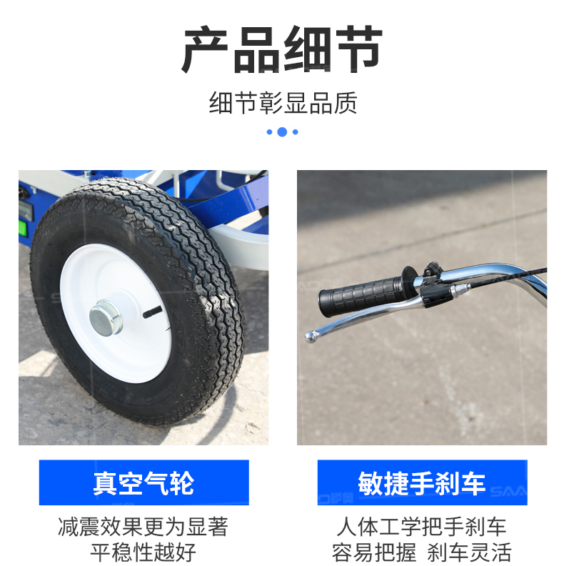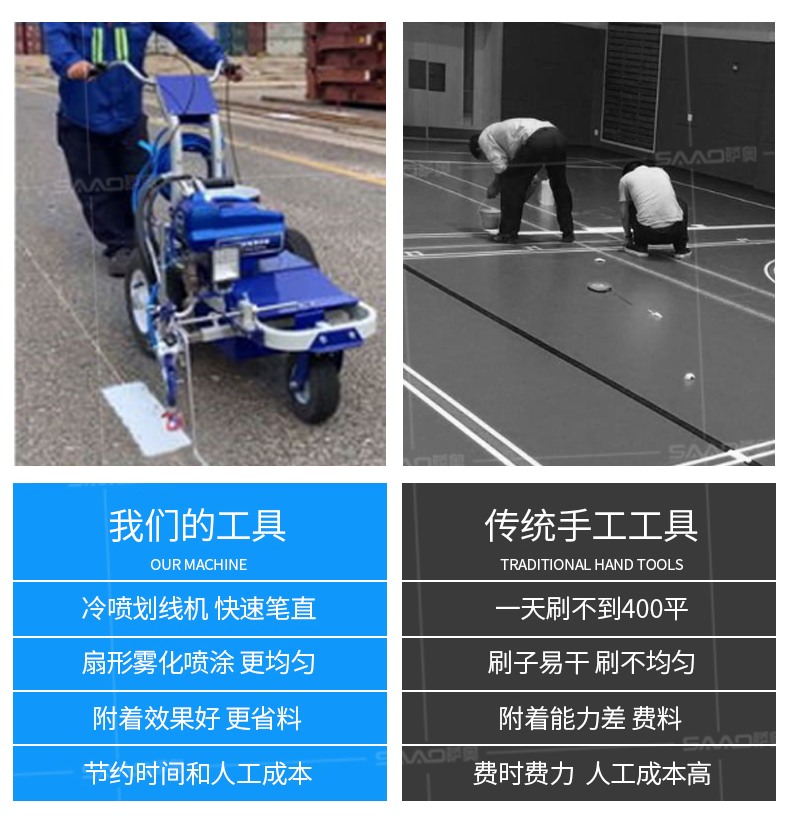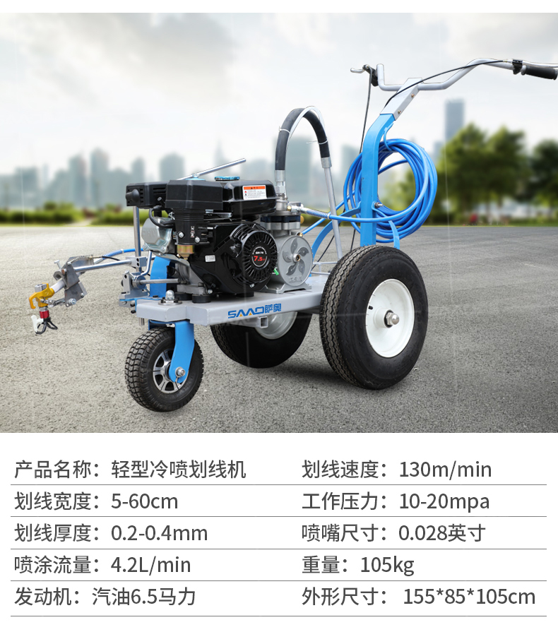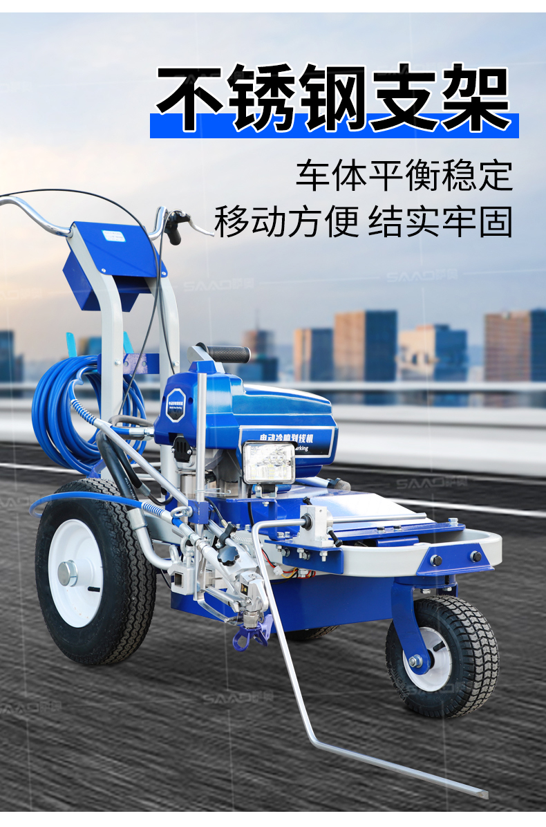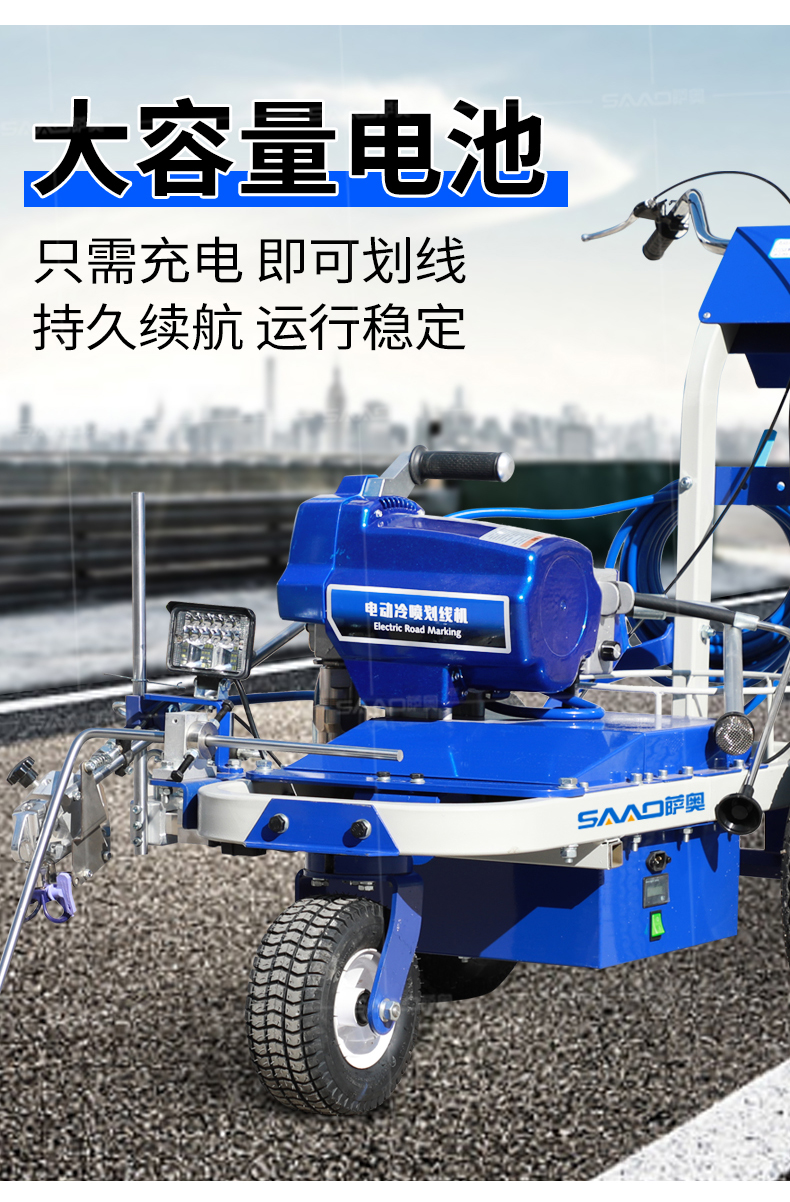 【產(chǎn)品介紹】 小區(qū)物業(yè)、地下車庫(kù)、學(xué)校、加油站、駕校場(chǎng)地等噴涂工作量不是特別大的客戶 【產(chǎn)品優(yōu)勢(shì)】 持久續(xù)航,運(yùn)行穩(wěn)定,劃線筆直,無噪音。 真空氣輪:減震效果更為顯著平