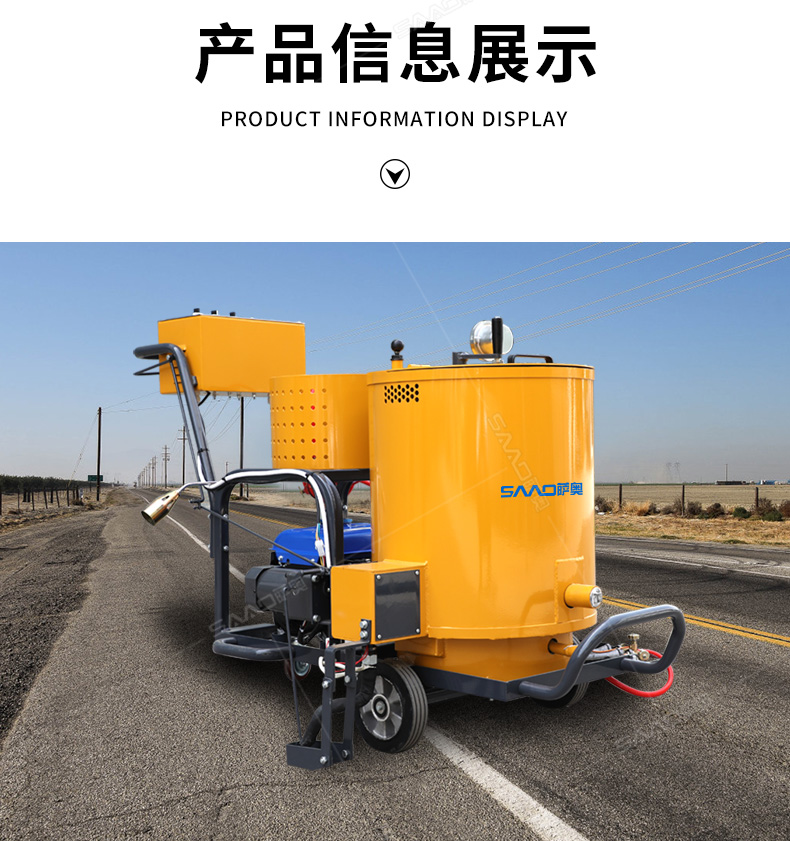 產(chǎn)品簡(jiǎn)介: 用于瀝青或水泥路面裂縫瀝青灌縫。 產(chǎn)品型號(hào):SGF-60 產(chǎn)品技術(shù)參數(shù): 發(fā)電機(jī)型號(hào) ET950 行走方式 手推式 料箱容積 60L 燃料類型 液化氣 加熱介質(zhì) 導(dǎo)熱油 出料速度 0-20可調(diào)
