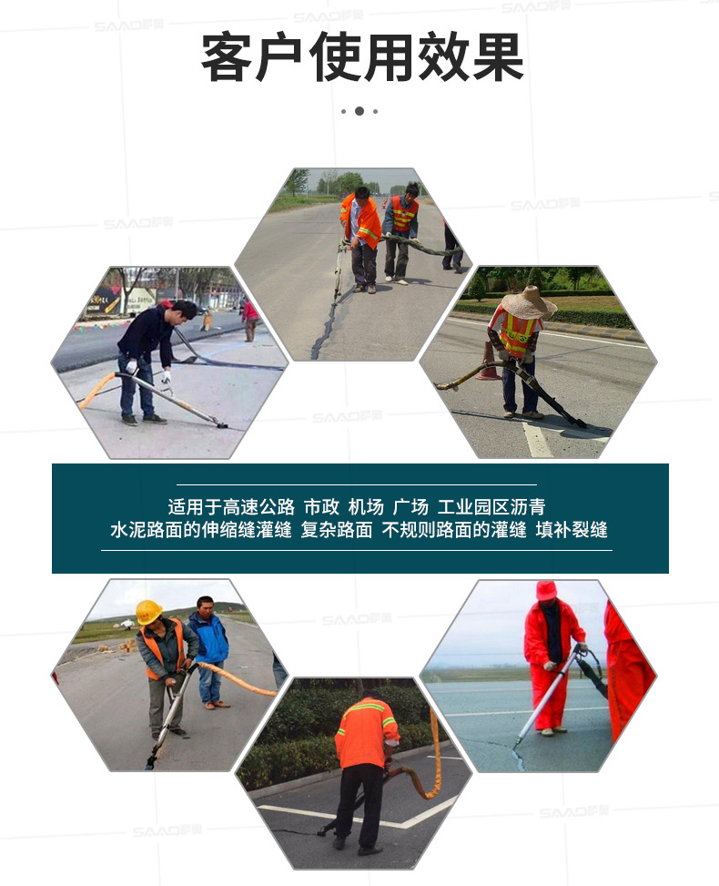 應用廣泛適用多種領域適用于高速公路、市政、機場、廣場、工業(yè)園區(qū)瀝青、水泥路面的伸縮縫灌縫、復雜路面、不規(guī)則路面的灌縫,填補裂縫。