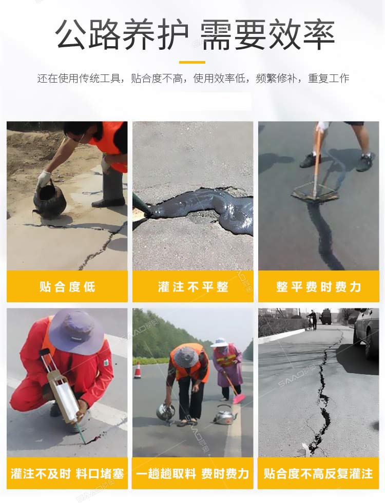 120升自動攪拌款灌縫機用于瀝青或水泥路面裂縫瀝青灌縫,注意:在灌縫前要對裂縫內(nèi)的塵土進(jìn)行清縫處理。