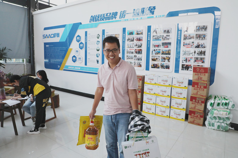 為了表達(dá)公司對(duì)全體職工的關(guān)愛(ài)之情,感謝大家的辛勤付出,9月28日下午,薩奧機(jī)械為全體職工發(fā)放了中秋節(jié)福利,將精心挑選的一箱箱禮包送到每一位員工的手中,同時(shí)也送去了公司對(duì)廣大職工的濃濃關(guān)愛(ài)和深深祝福。