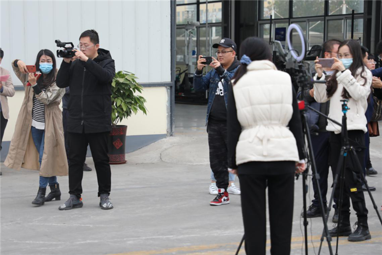 在薩奧機械負責人韓廣非的陪同下,采訪團先后參觀了生產加工廠區(qū)和電商辦公區(qū)兩大業(yè)務端。在新廠區(qū),采訪團剛下大巴車,就被正在直播演示怎樣操作壓路機的美女主播所吸引,大家紛紛走向前拍照、攝像、采訪忙的不亦說乎。后來才知道,大家都比較好奇一般都是直播買衣服、鞋子等的,沒想到壓路機這種特種作業(yè)設備也可以直播,而且還這么有意思。其實對于這種特種設備,直播時立馬成交的并不多,但是薩奧卻一直堅持在做,因為他們認為:設備原本就是冰冷的,又是特種設備,客戶只通過詳情介紹并不能真正感受到設備本省的性能、特點等,這樣直播操作,可以讓用戶更直接的去感受設備本身。