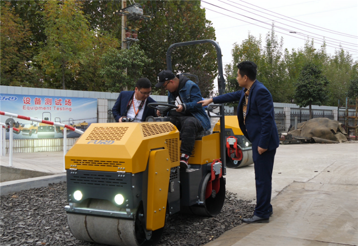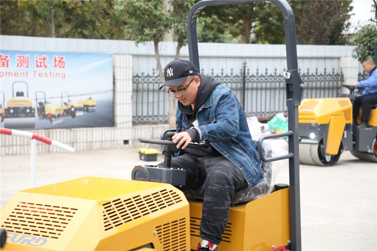 對于采訪團而言,只看還真不過癮,當大家參觀測試區(qū)時,看到測試員正在測試剛組裝好的座駕式壓路機,這時組織媒體采訪團的阿里負責人找到韓總說:“有些媒體朋友也想上機體驗一下。”壓路機不同其它設備,操作非常簡單,想試咱就試。韓總協調之后,采訪團紛紛上機體驗,從開壓路機的操作情形來看,誰也想不到這是一個平時拿筆桿子工作的人。