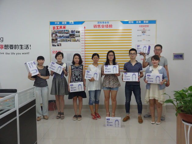 上午早會期間,公司為上個月的成績好的團隊進行了獎勵,獎勵團隊小組每人一套肩頸按摩器,是一個大大的驚喜!