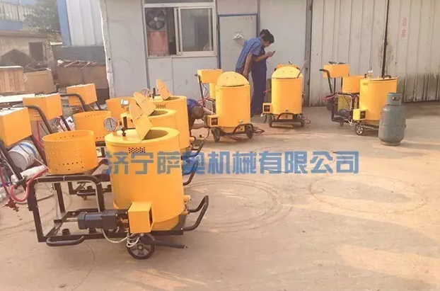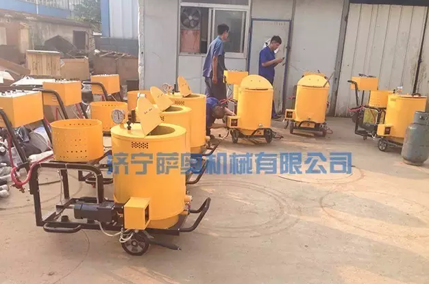 此次發(fā)貨的瀝青灌縫機均為手扶式小型瀝青灌縫機,小型灌縫機采用液化氣加熱系統(tǒng),導(dǎo)熱油循環(huán),使瀝青或灌縫膠快速融化,通過瀝青泵的壓力由出料口出料而達到裂縫處理的效果。通過壓力注射式灌縫,使材料和縫壁緊密結(jié)合,轉(zhuǎn)向靈活的萬向輪跟蹤裂縫,使灌縫效果美觀。由于灌縫材料使用瀝青或灌縫膠,在溫度較低時容易凝固,灌縫機配有雅馬哈發(fā)電機組提供整機動力,灌縫機在出料管部位采用恒溫控制系統(tǒng),避免材料燒焦老化,保證出料的順暢。