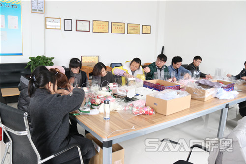 沒錯(cuò),你猜對(duì)了,本次圣誕節(jié)的圣誕老人就是濟(jì)寧薩奧機(jī)械的全體員工。本次的圣誕節(jié)的各種布置以及禮物都是全手工制作,包括禮物的制作、圣誕樹的布置等。當(dāng)同事們將自己制作成功的禮物互相贈(zèng)送給對(duì)方的哪一刻,是一種用語(yǔ)言無(wú)法形容的感動(dòng);再看看自己精心布置成功的圣誕樹,也許它并不是很漂亮的,但它確實(shí)是具特色的;也許它并不是很華麗的,但它在我們每個(gè)人心中確實(shí)非常寶貴的。