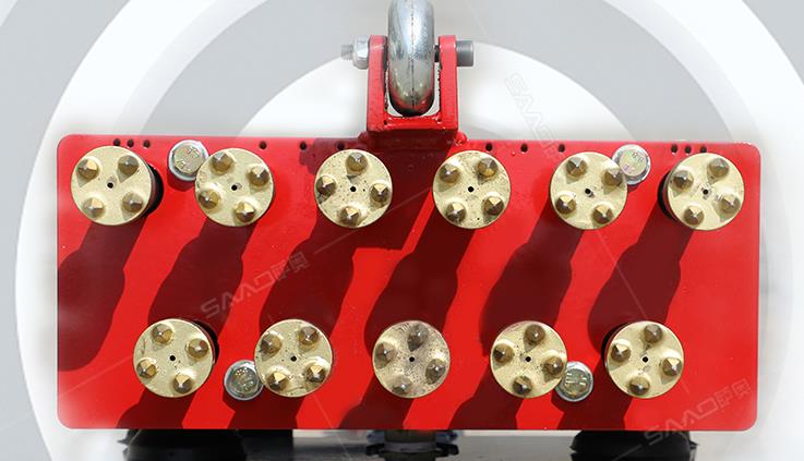 11頭小型手持鑿毛機,顧名思義有11個頭,所以鑿毛能力隨之增加,有這么一個參考值強度在C30-C40之間,不過這也要根據(jù)施工混凝土強度和鑿毛頭的鋒銳程度而定。