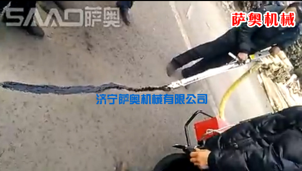 5、灌縫:若在氣溫低于7℃時,使用熱噴槍對開好的槽進行預(yù)熱以提高密封膠粘結(jié)力;如槽有潮氣,使用熱噴槍干燥處理。將加熱好的密封膠均勻地灌入槽內(nèi),并在裂縫兩側(cè)拖成一定寬度與厚度的封層。