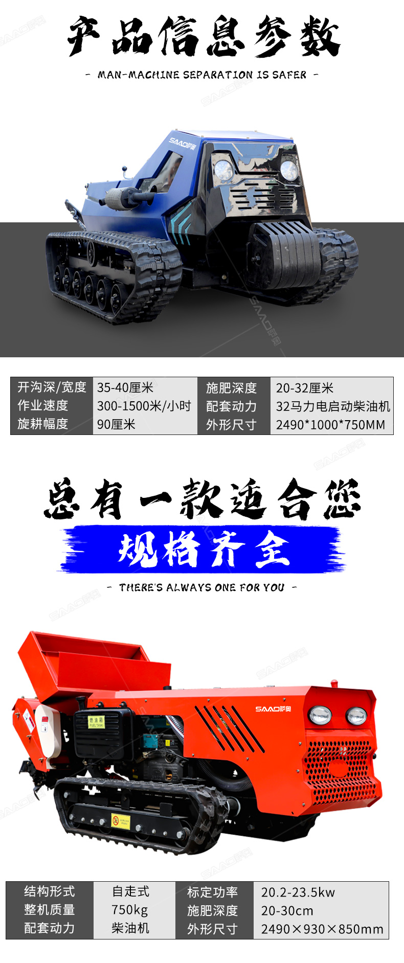 本產(chǎn)品適用各種山地,丘陵、平原、旱田、大棚、果園、及狹窄地作業(yè),省心。適合各種土質(zhì):凍土、硬土、粘土、黑土地,山地,軟土均可使用。 多功能履帶式開(kāi)溝施肥機(jī)可以實(shí)現(xiàn)大型機(jī)械無(wú)法進(jìn)入的果園、小塊土地、大棚、茶園、丘陵、山地等不同的地形和土質(zhì)進(jìn)行作業(yè)。