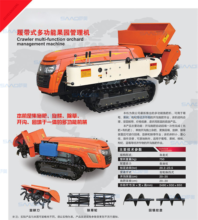 本機器產(chǎn)品是集施肥、旋耕、除草、開溝、回填于一體的多功能機械;本機為公司推出的多功能施肥機,可用于葡萄、果樹、枸杞等經(jīng)濟(jì)作物的開溝施肥作業(yè)。該機結(jié)構(gòu)合理,堅固耐用,價位低廉,是農(nóng)民致富的良好產(chǎn)品。