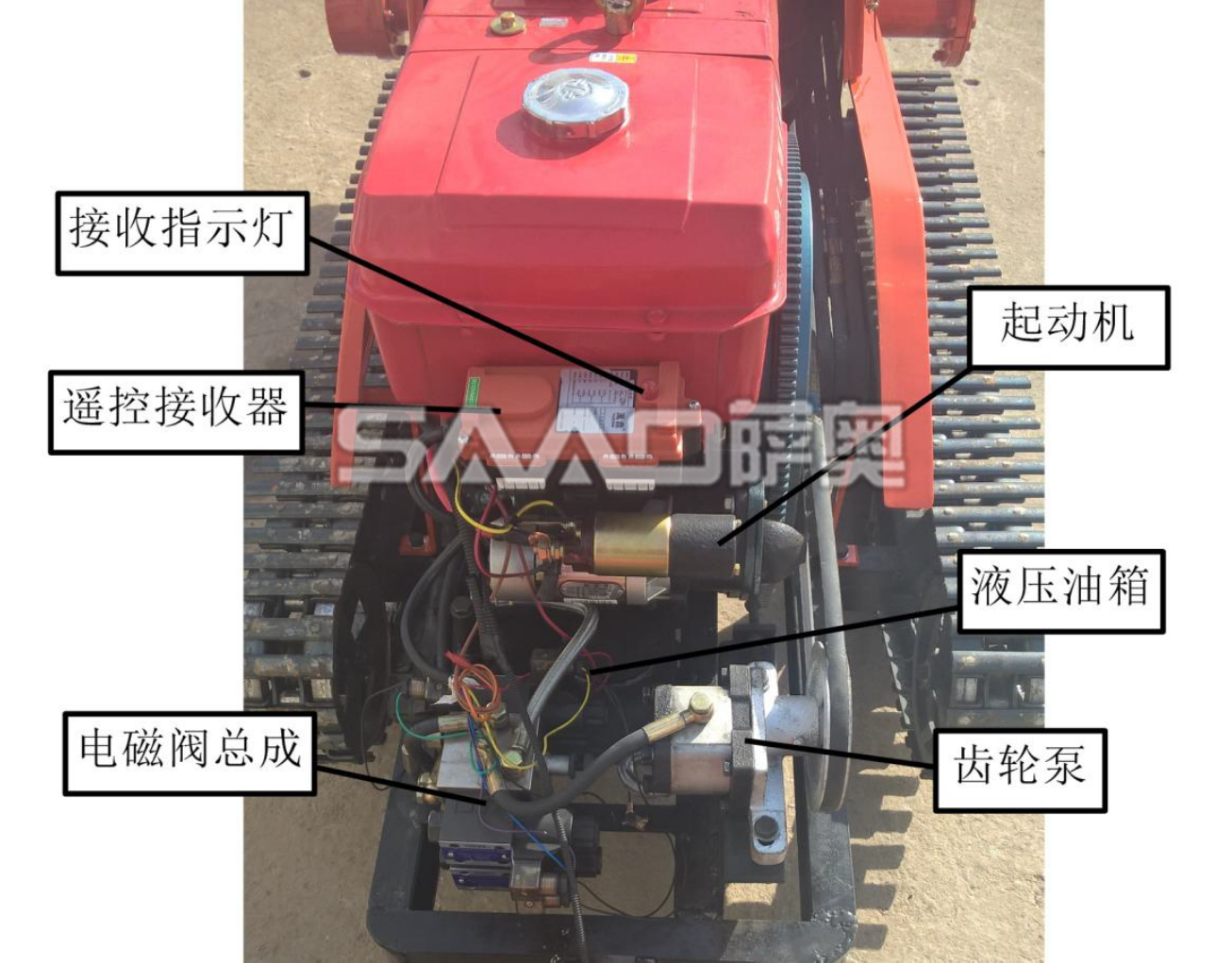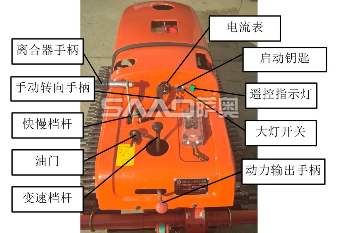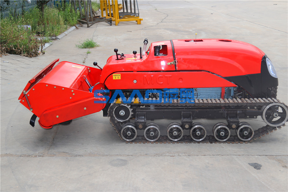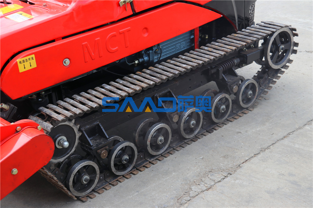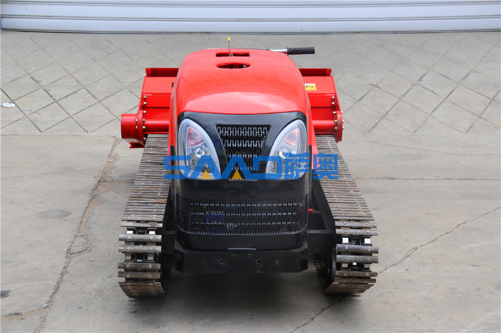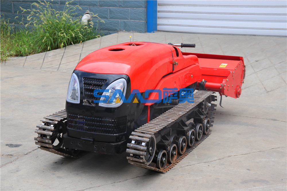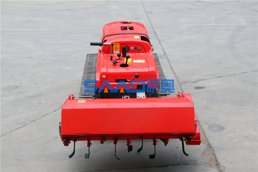 遙控履帶自走式旋耕機(jī)是在機(jī)械操縱的基礎(chǔ)上,采用先進(jìn)的電子集成控制系統(tǒng)和液壓系統(tǒng)相結(jié)合,改進(jìn)設(shè)計(jì)為機(jī)械、遙控兩套操縱系統(tǒng)。可以隨機(jī)操縱,也可以人機(jī)分離、遙控操縱。使履帶自走式旋耕機(jī)實(shí)現(xiàn)了手、自一體化操作,從而大大降低了操作人員的勞動(dòng)強(qiáng)度,更大程度上保證了操作人員的人身安全。