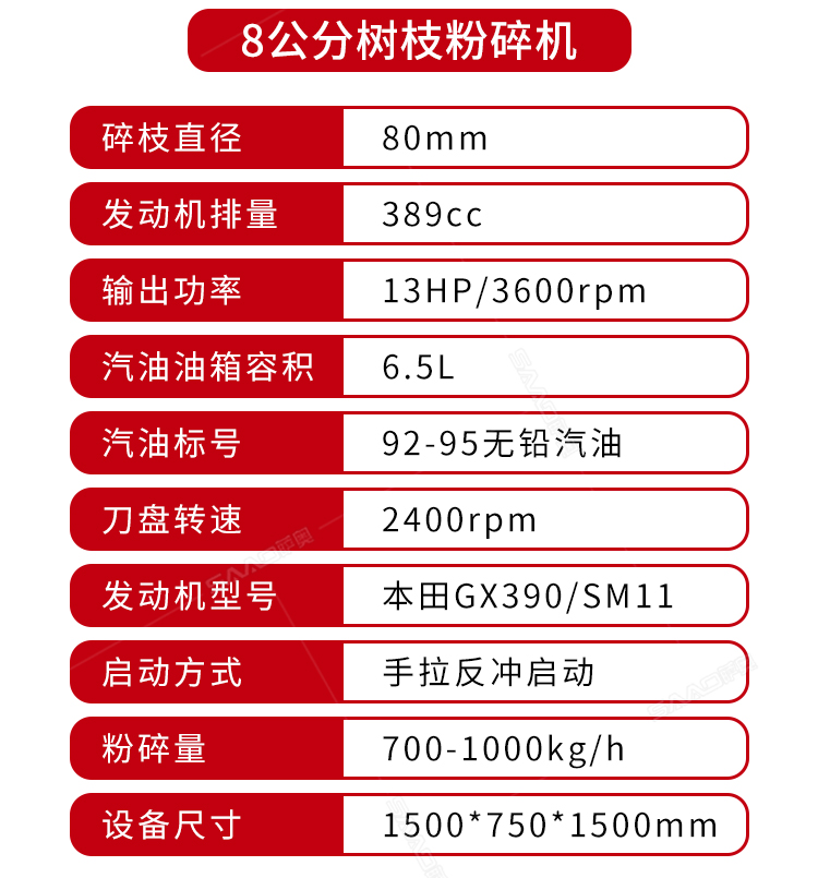 動力強勁,高效粉碎,可供公園,物業(yè)和綠化公司等專業(yè)組織使用,可輕松將直徑長達8.5cm的樹枝卷入并粉碎,結構緊湊,安全耐用。