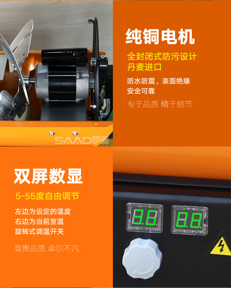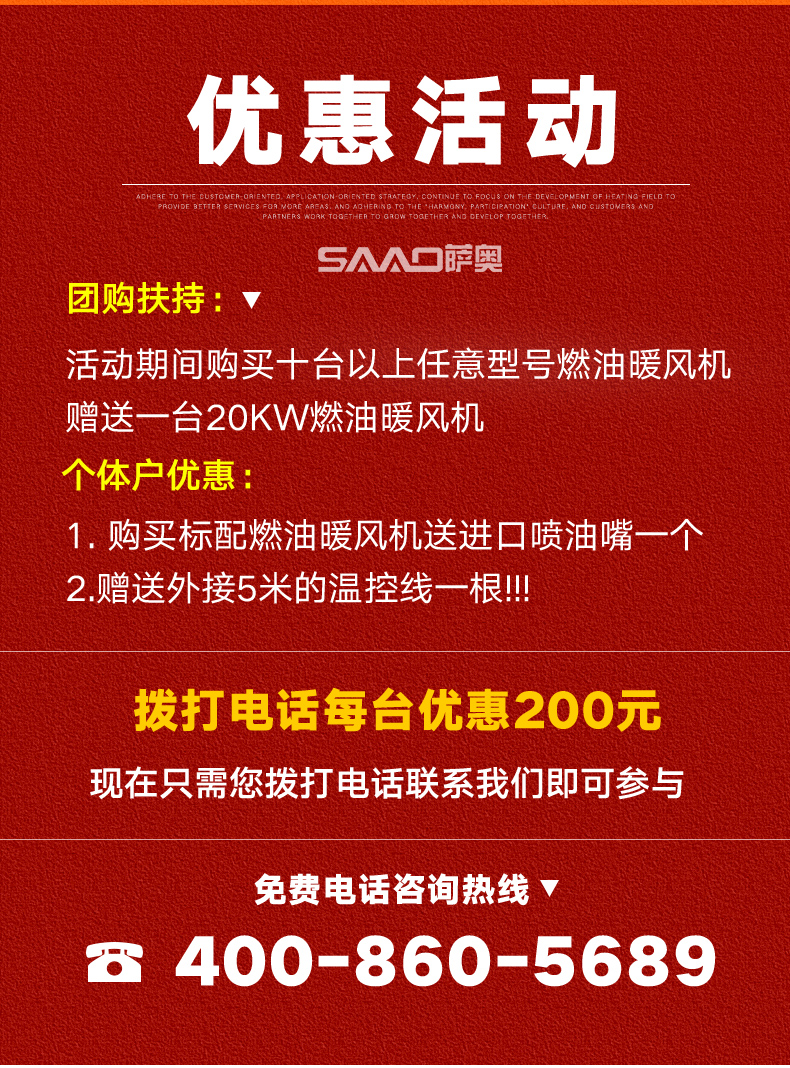我廠專業(yè)生產(chǎn)溫室大棚暖風(fēng)機(jī),養(yǎng)殖場專用暖風(fēng)機(jī),15KW/30KW電暖風(fēng)機(jī),20KW/30KW/70KW/80KW燃油暖風(fēng)機(jī),型號齊全,全國發(fā)貨!過熱保護(hù),恒溫,質(zhì)量保證!如需了解請致電24小時(shí)免費(fèi)電話:400-860-5689