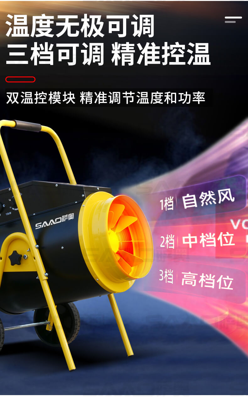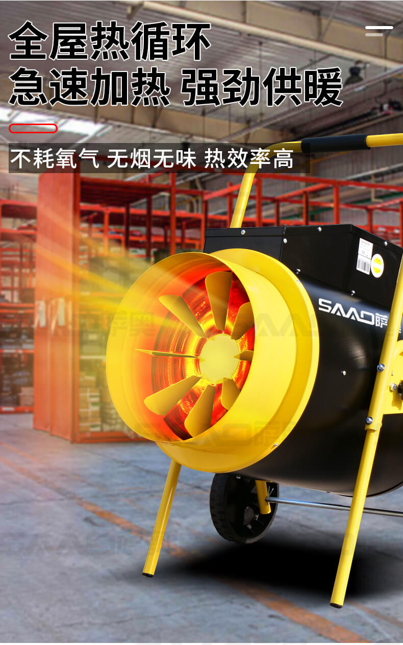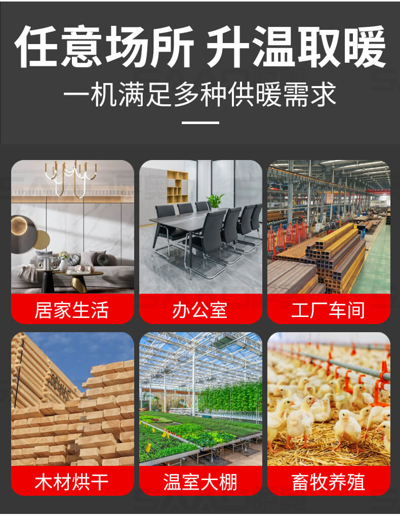 一款大功率、大面積使用的取暖設(shè)備,適合廠房、車(chē)庫(kù)、商店。辦公室、烘干室、養(yǎng)殖場(chǎng)等場(chǎng)所使用。