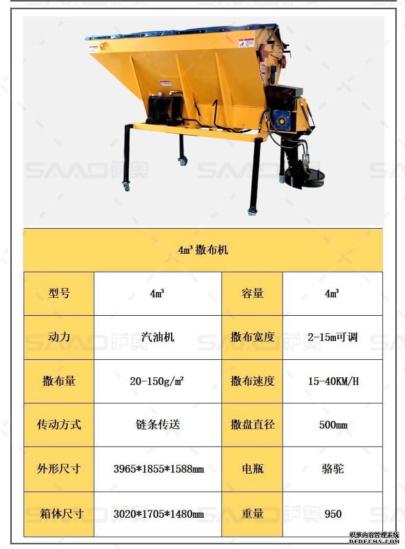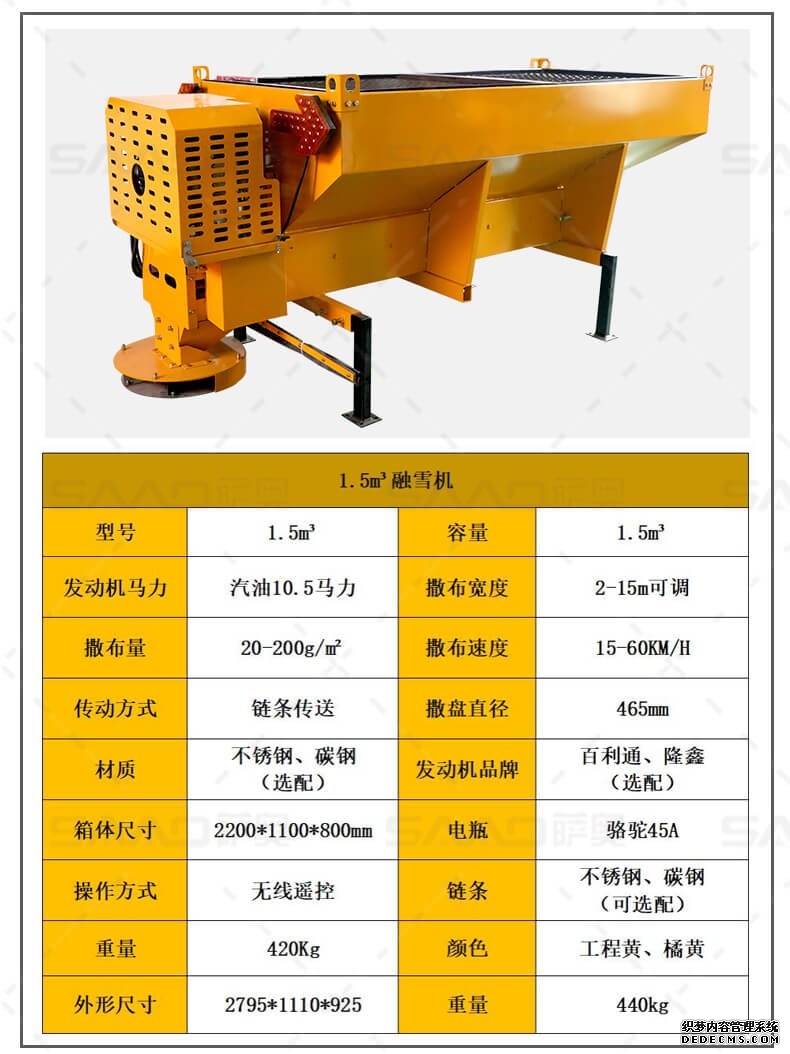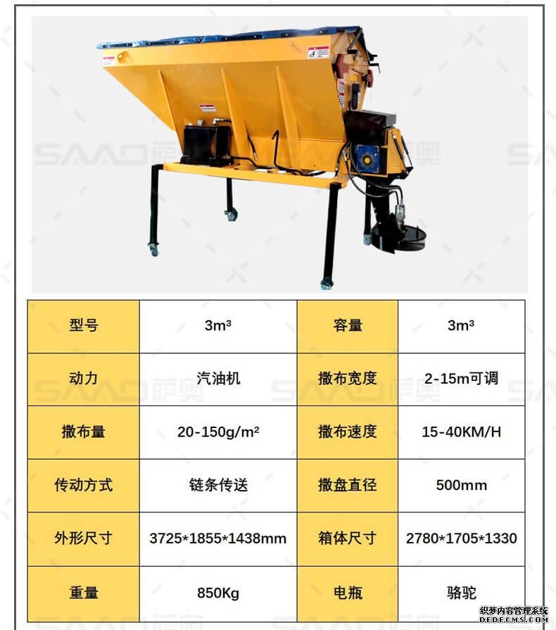 融雪劑撒布機是車載式撒布機,適用于冰雪路面防滑沙料和融雪劑的撒布,是市政公路、高速公路的融雪撒布的便利設(shè)備。