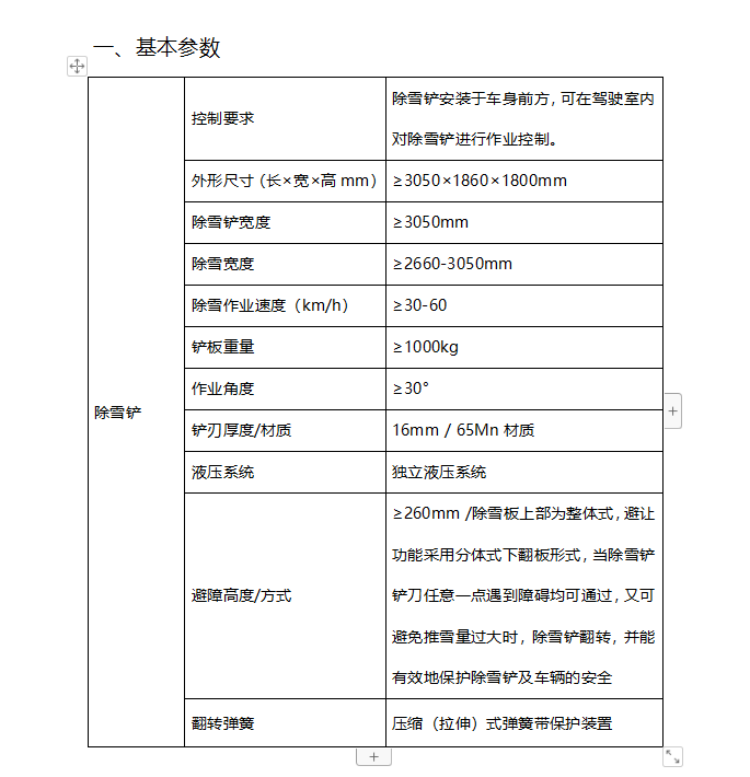 7、依路面橫坡坡度,除雪鏟鏟刀具有自動(dòng)調(diào)節(jié)功能。