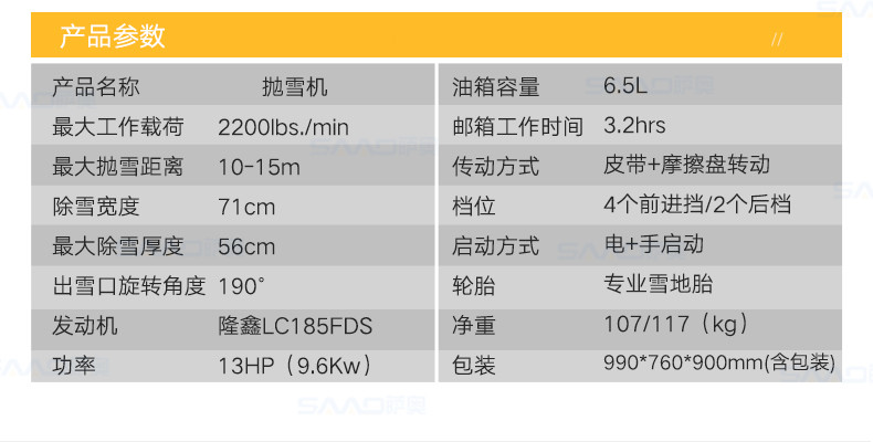 SA-71小型手扶自走清雪機掃雪機(黃色)