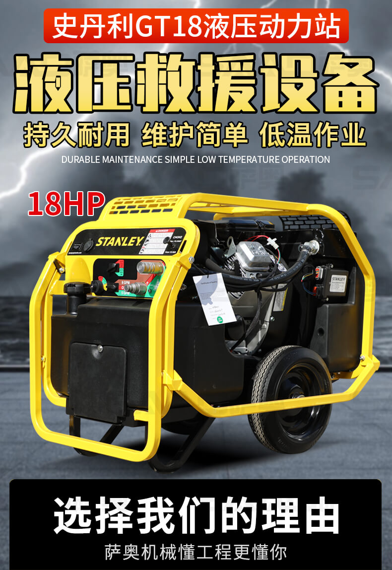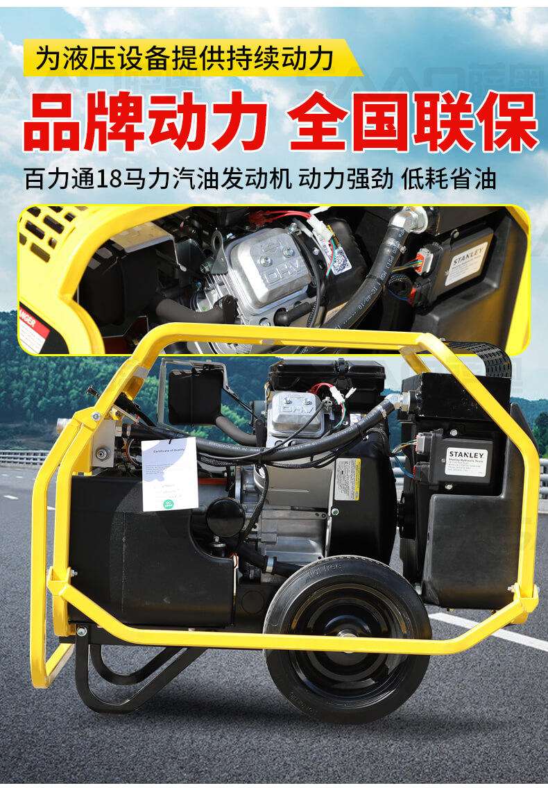 產(chǎn) 品介紹 GT18動(dòng)力站是為液壓設(shè)備提供持續(xù)動(dòng)力的,它同時(shí)滿足1類和2類液壓設(shè)備。它采用百力通18馬力汽油發(fā)動(dòng)機(jī),有良好的液壓油散熱系統(tǒng),以滿足液壓設(shè)備可以正常、持久地工作。