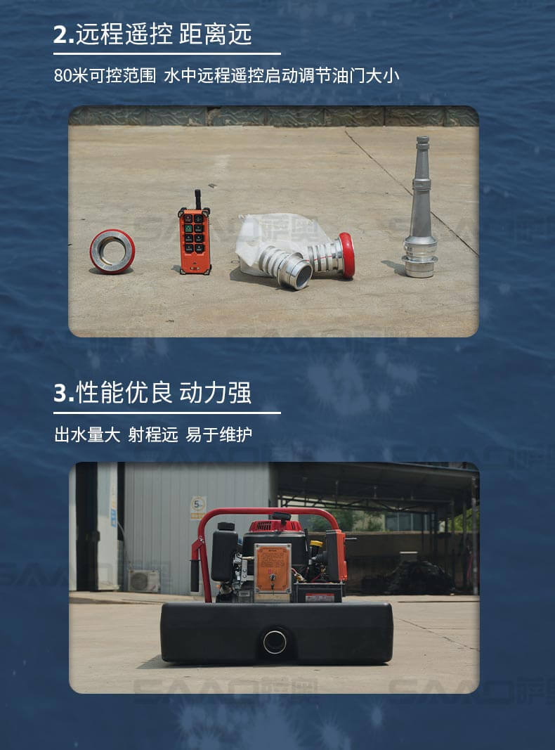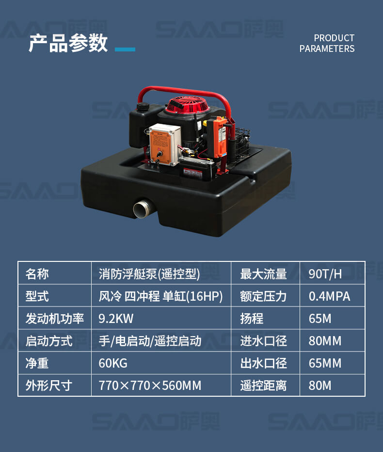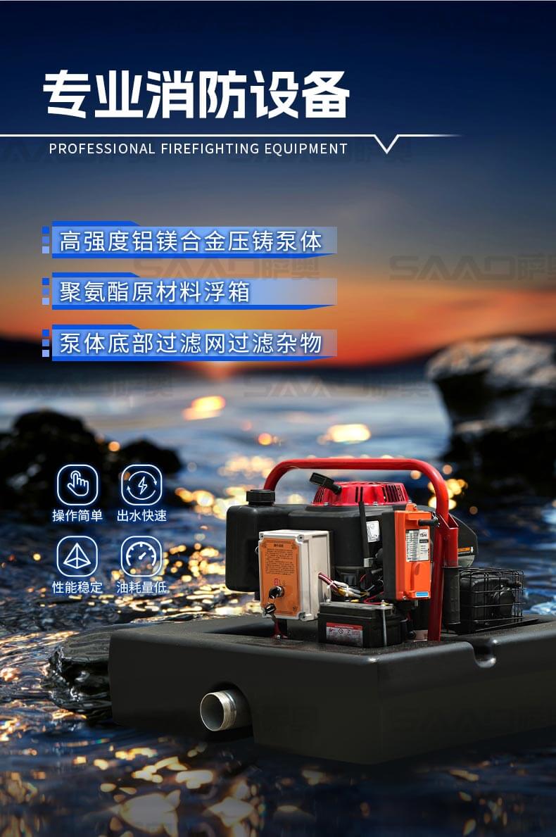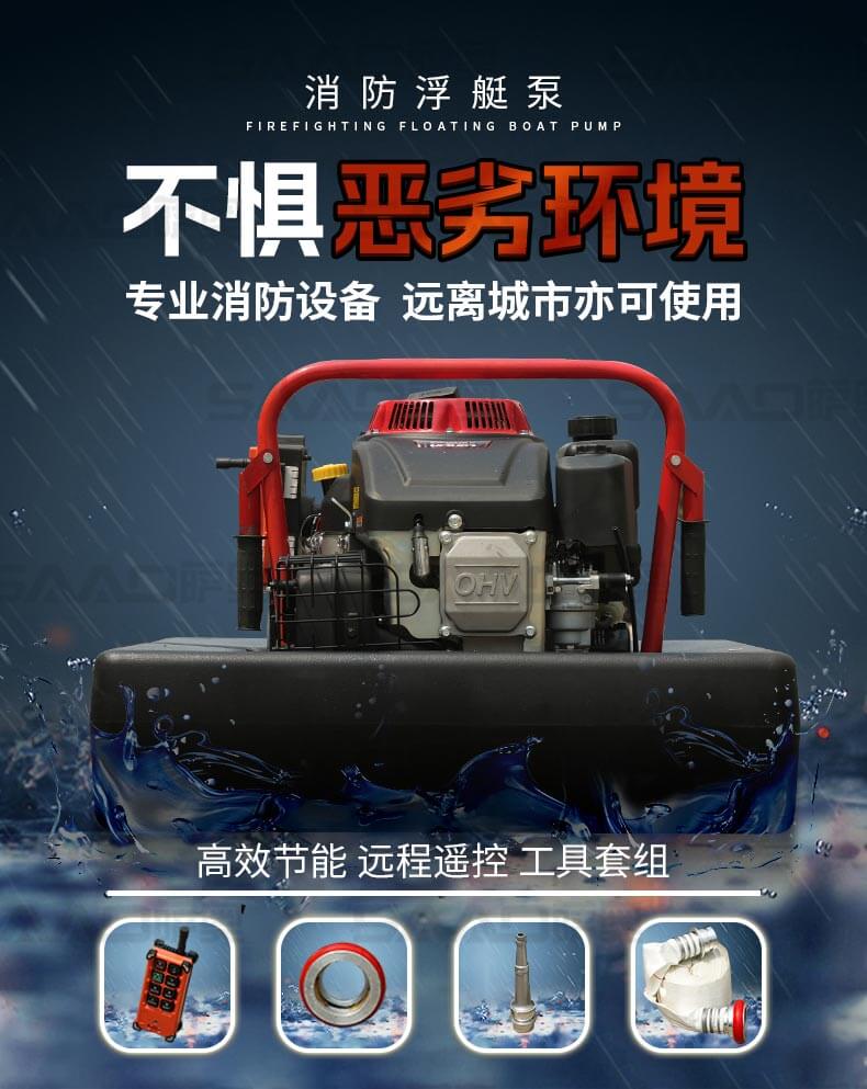 消防浮艇泵適合于城鎮(zhèn)、鄉(xiāng)村及消防車不易到達(dá)的火災(zāi)現(xiàn)場(chǎng)或臨時(shí)取水,輕量化設(shè)計(jì),聚氨酯原材料浮箱,耗油量低,操作簡(jiǎn)單。
