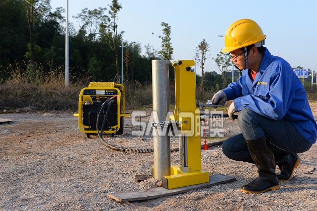 薩奧SAHD-50液壓拔樁機是一款手動操作的輕型拔樁工具。雖然設(shè)備自重有限,但卻有強勁的拔樁力。適用于地面上苛刻的拔樁工作。最大每次拔起行程200毫米,可拔任意形狀的木樁和鐵樁。