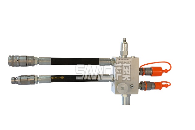 液壓分流閥用于連接液壓工具和一挖掘機(jī)、裝載機(jī)、工程車等承載設(shè)備的液壓動力輸出端。