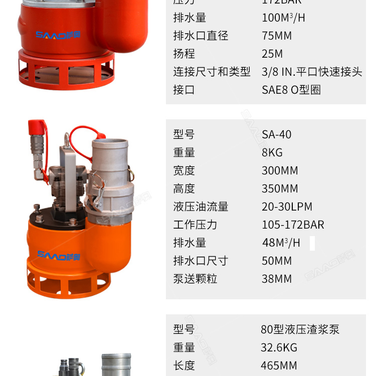液壓渣漿泵重量輕、緊湊和效率高,比普通的污水泵具有更大的納污能力和更大的排水量,適宣于砂漿、泥漿類固體含量高的泵送工作,它在公路、市政、搶險救援、城市管網(wǎng)排水、燃