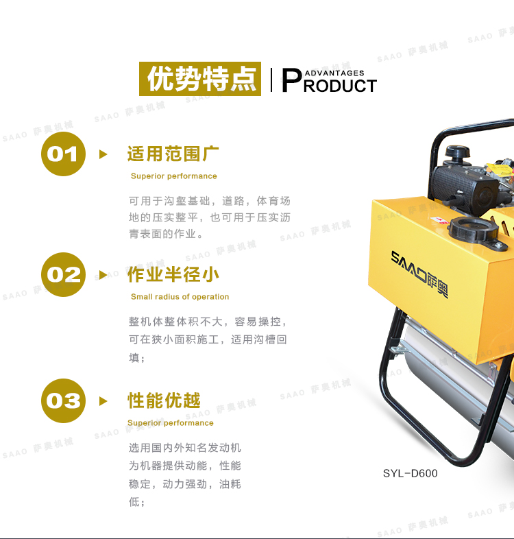 產(chǎn)品介紹: 主要用于溝渠基礎(chǔ),道路,體育場(chǎng)地的壓實(shí)整平,也可用于壓實(shí)瀝青表面的作業(yè)。