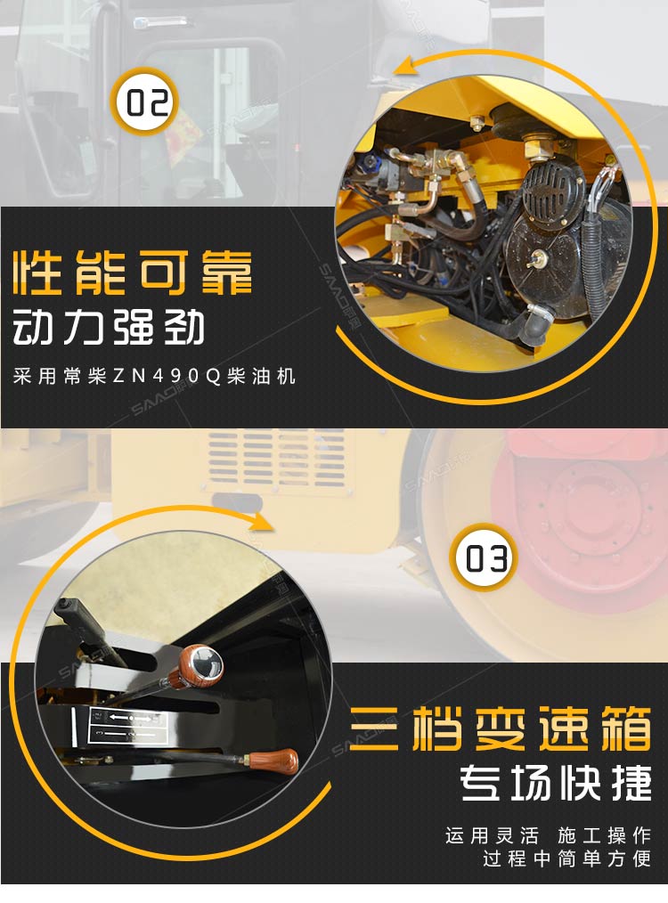 該機(jī)是兩輪串聯(lián)振動(dòng)壓路機(jī),適用于各類(lèi)穩(wěn)定土、瀝青混凝土材料的壓實(shí)工程,也可用于道路修補(bǔ)、人行道和體育場(chǎng)的碾壓工作,是建設(shè)公路、市政工程及工業(yè)場(chǎng)地的理想壓實(shí)設(shè)備。